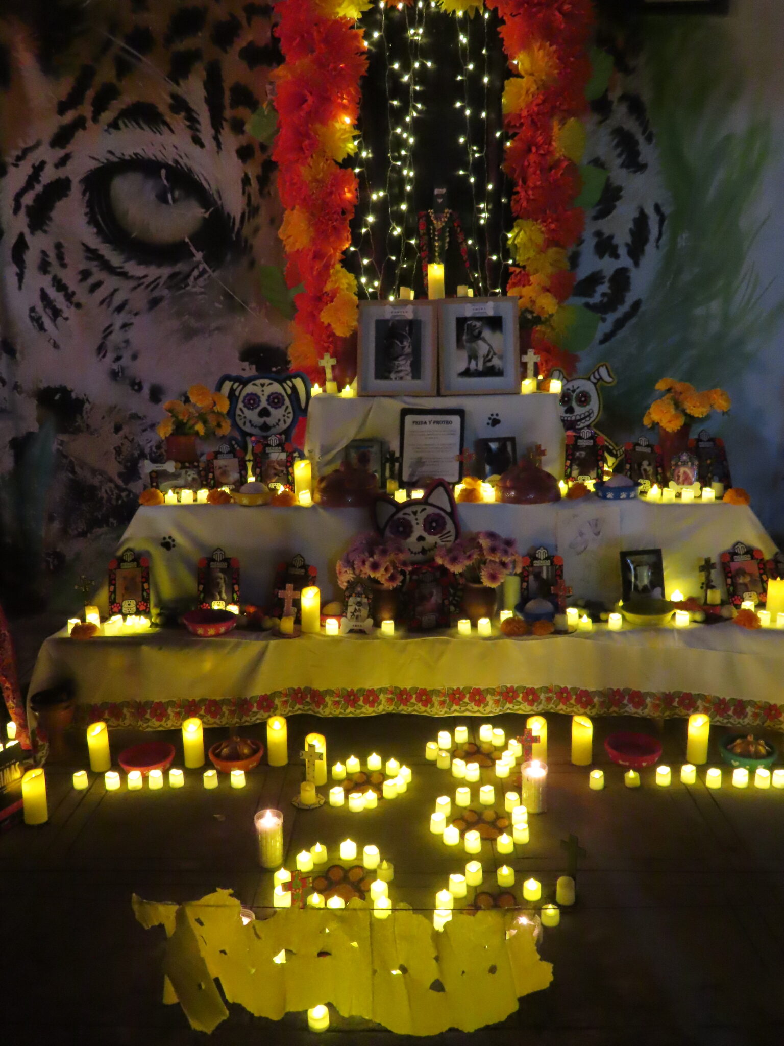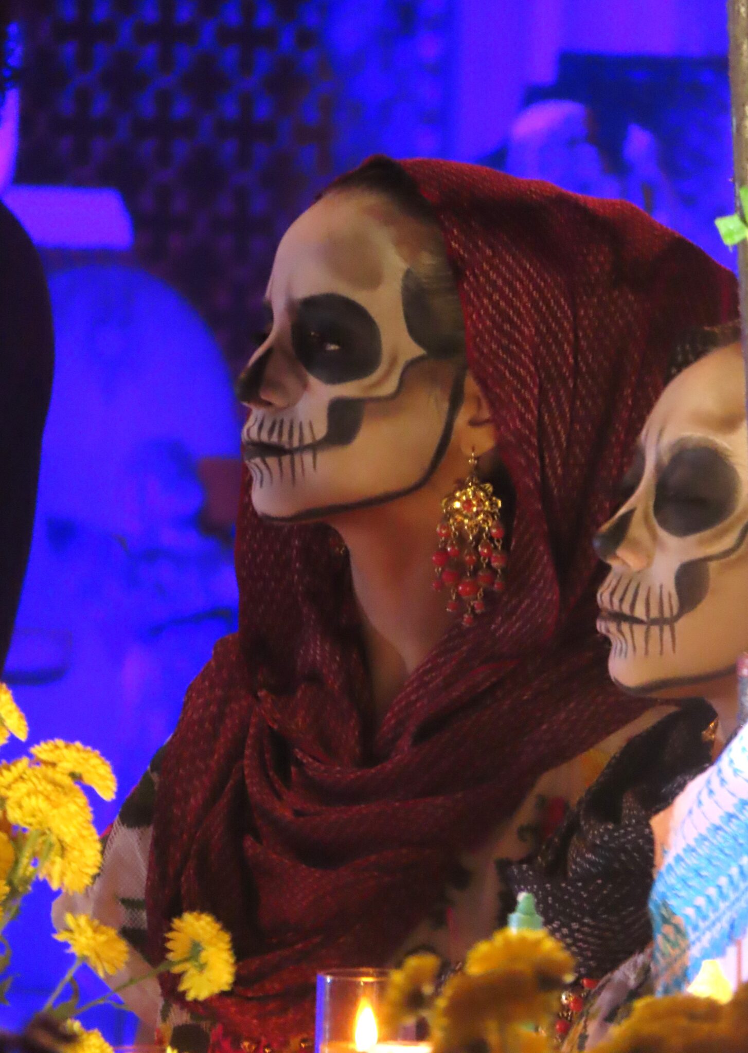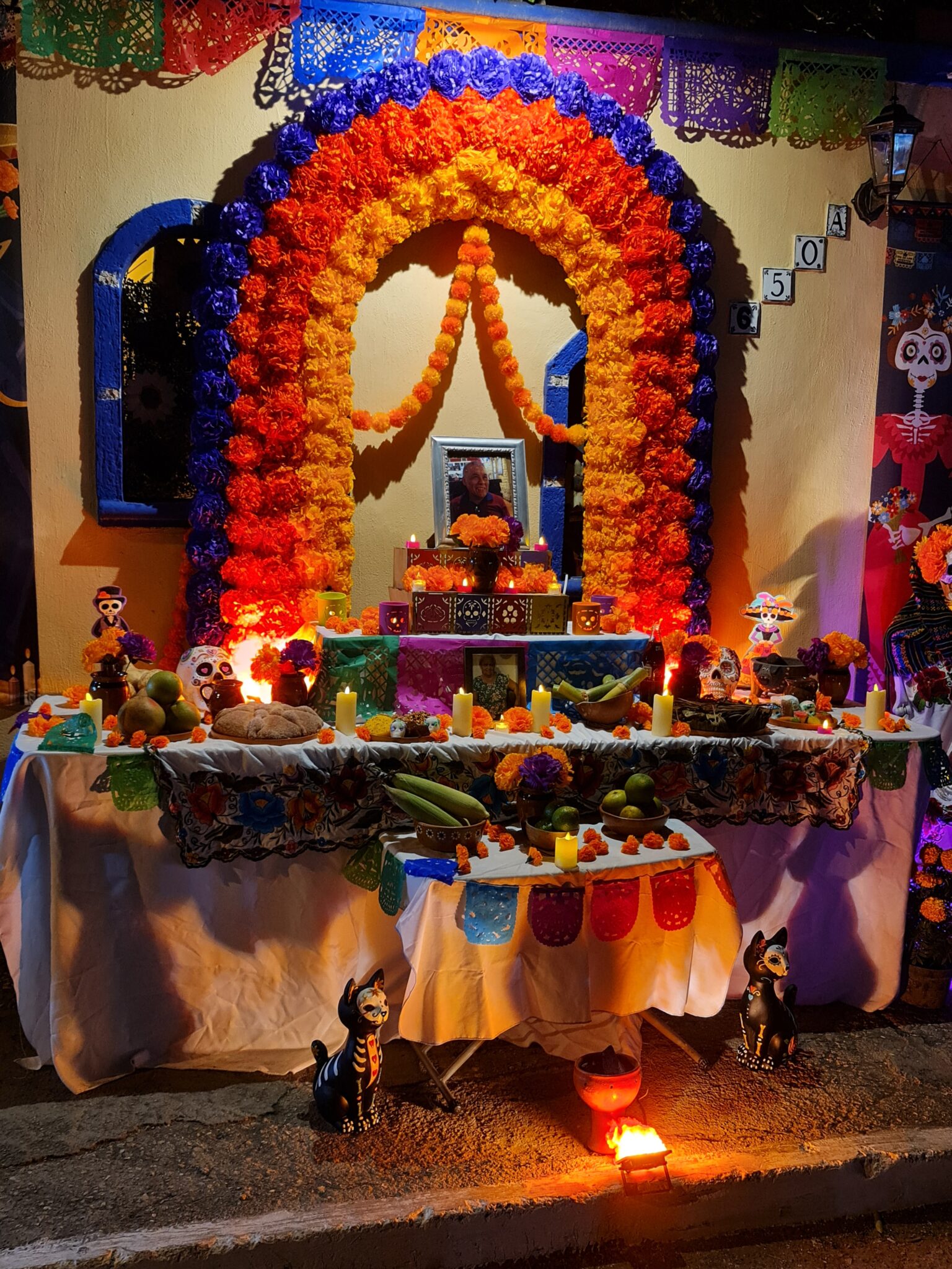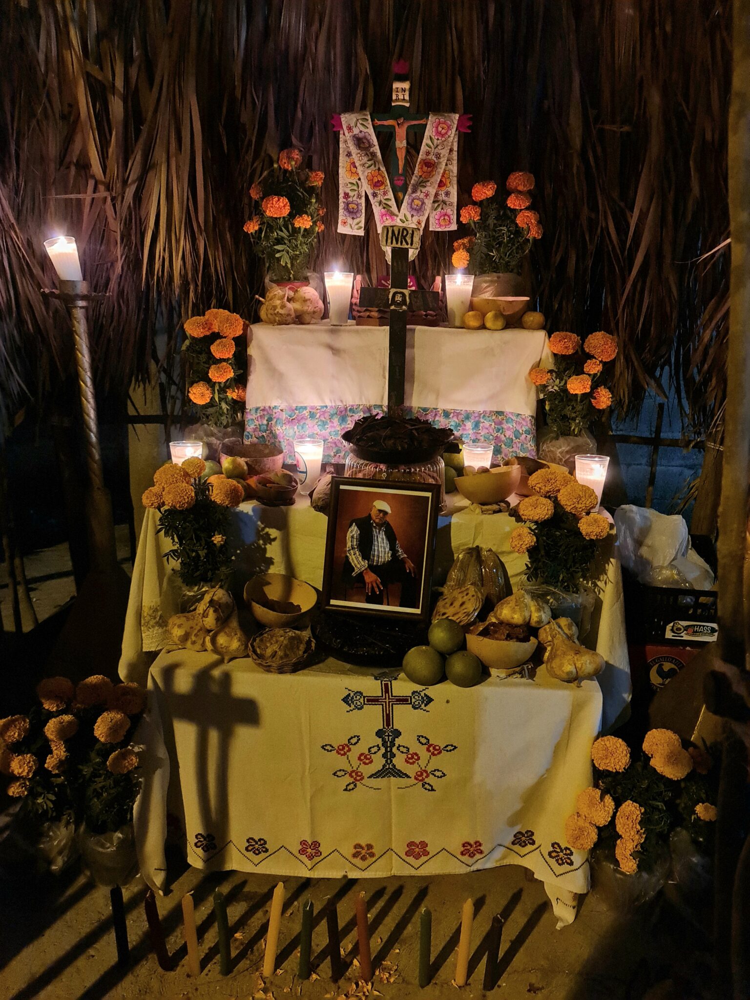Die geschminkten Gesichter stehen für die Seelen der Verstorbenen. Die Menschen gehen den symbolischen Weg der Ahnen – vom Friedhof zu ihren Familien, zu den liebevoll geschmückten Ofrendas. Auf den Tischen stehen Lieblingsessen der Verstorbenen, Pan de Muerto, Schokolade, Tequila oder Coca-Cola. Man erzählt uns Geschichten, bietet uns zu essen und zu trinken an und erklärt geduldig jede Gabe.