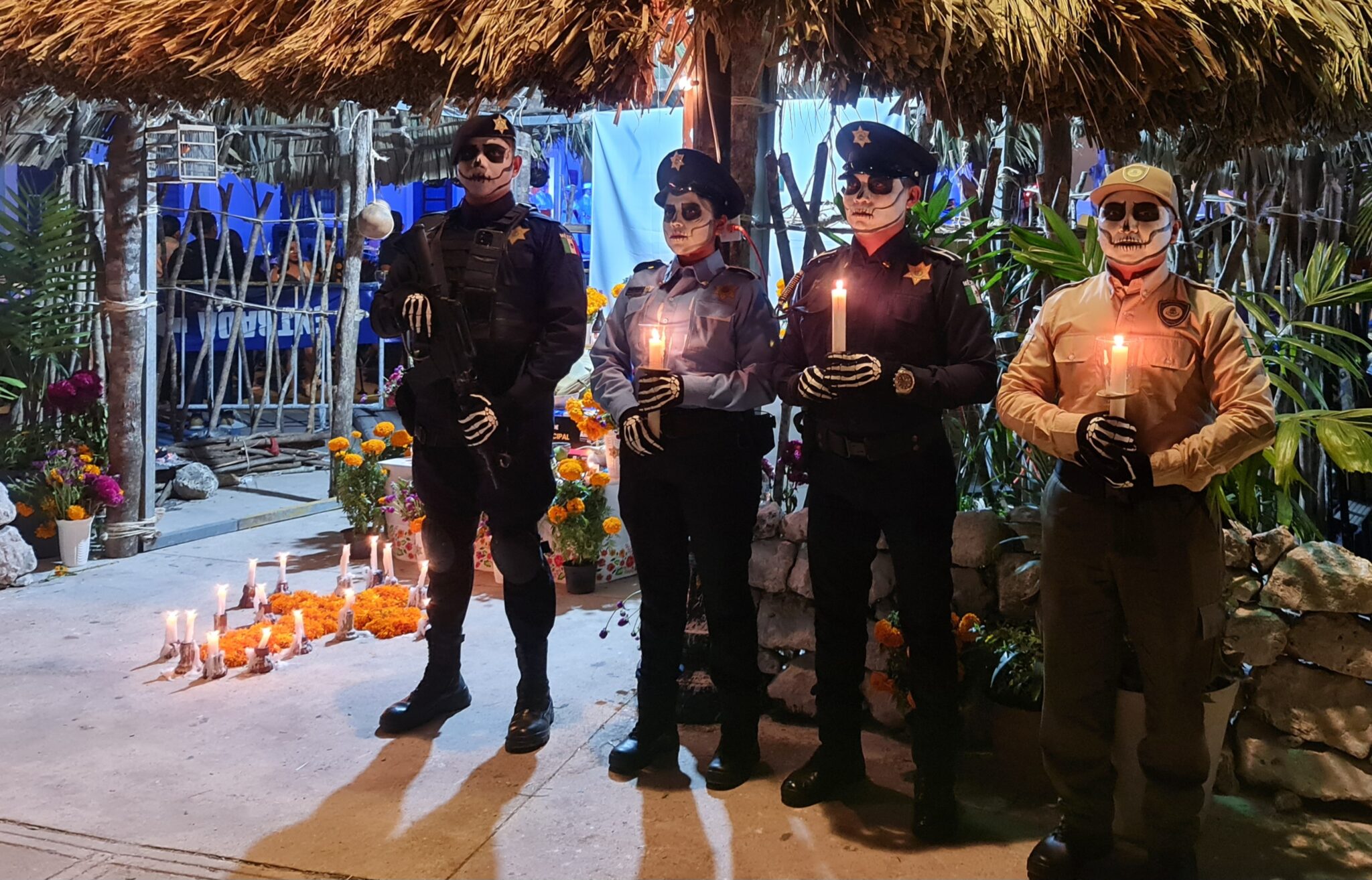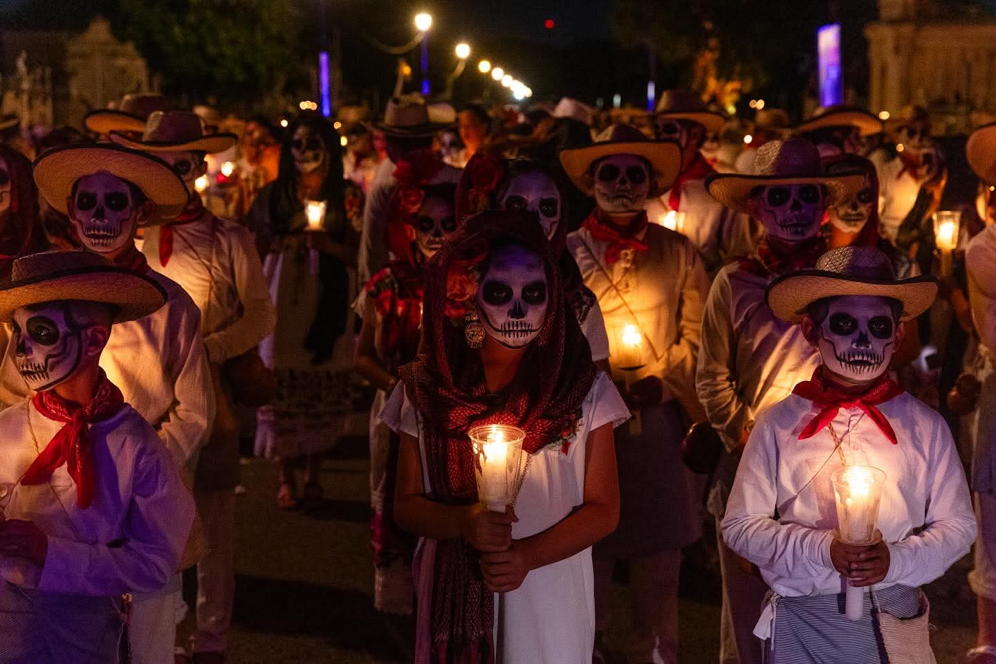 Der Marsch beginnt dort, wo das Reich der Lebenden endet: am Friedhof von Mérida. Von hier aus ziehen die Teilnehmer durch die Straßen – vorbei an Altären, Kerzen, Rauch von Copalharz und den orangefarbenen Blüten der Cempasúchil, der „Blume der Toten“.