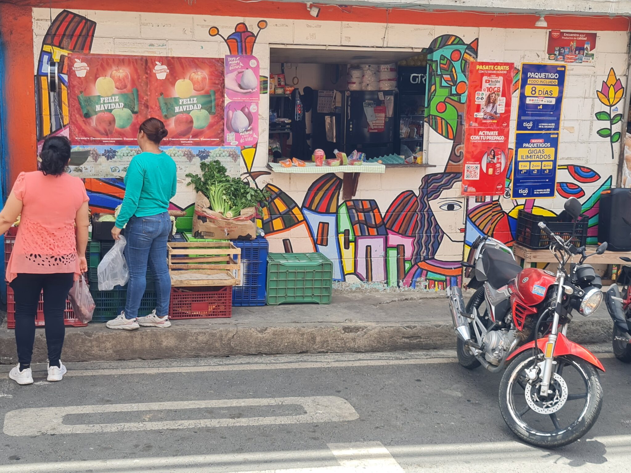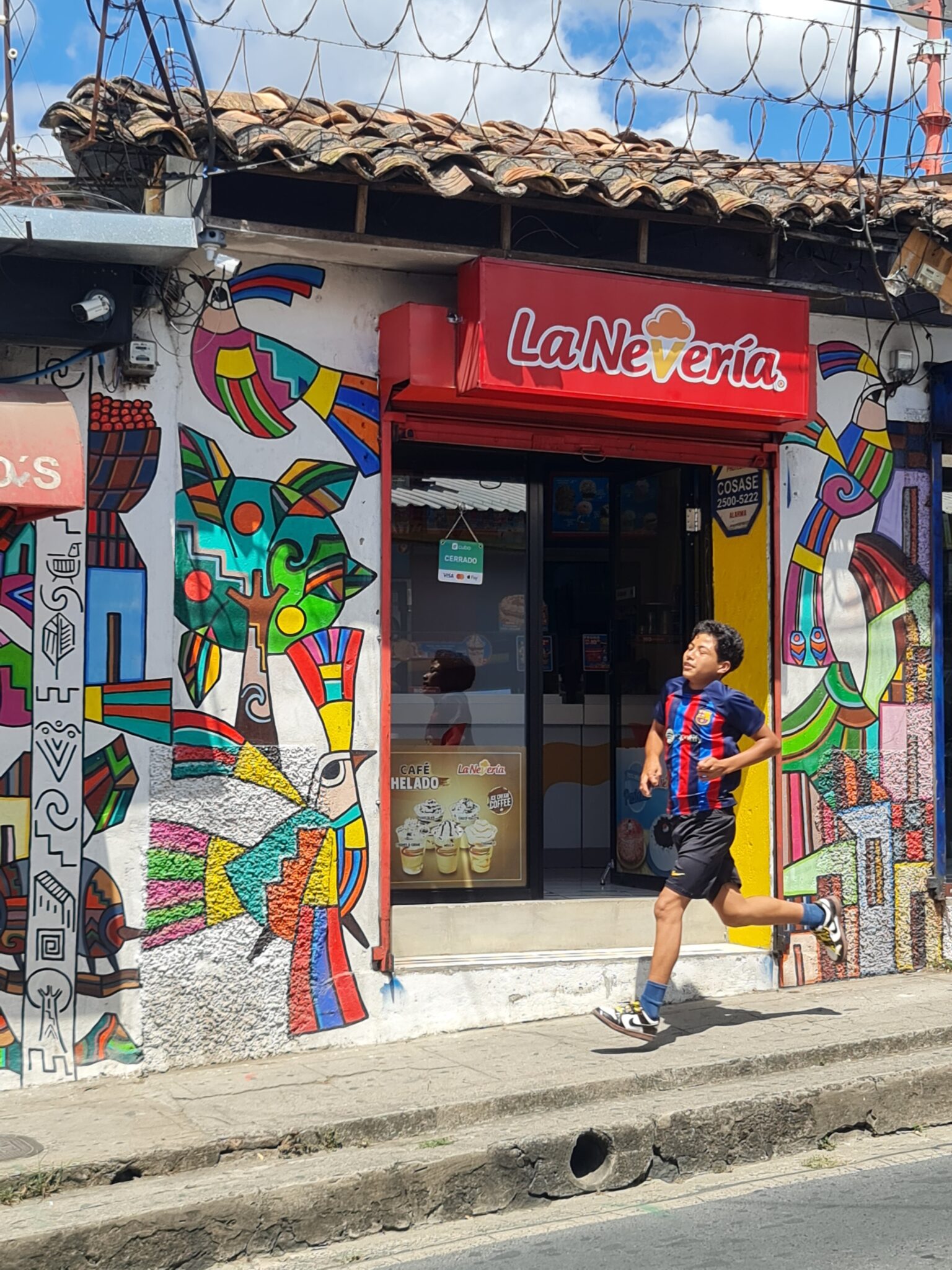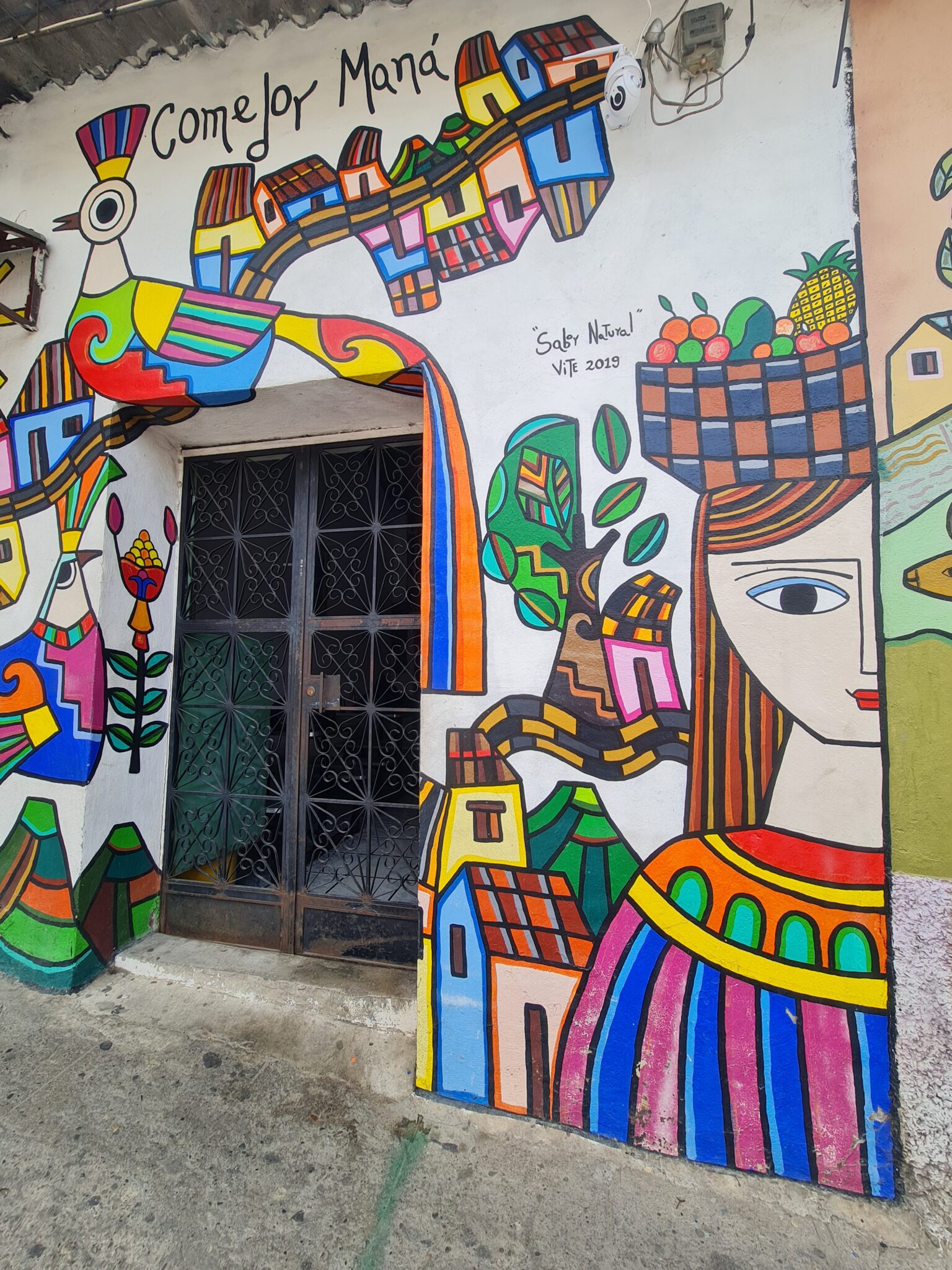 Mein Kunstherz schlägt höher. Wir fahren in die Berge und kommen nach La Palma, einem kleinen Ort auf über 1.000 Metern Höhe. Bekannt wurde es durch Fernando Llort. Er kam in den 1970er Jahren in das Dorf und gilt als Begründer des naiven Volkskunststils von La Palma. Seine Kunst verbindet Spiritualität, indigene Traditionen, einfache Formen und kräftige Farben. Seine Werke zeigen die Harmonie zwischen Mensch und Natur – Bilder einer friedlichen Gesellschaft. Und das in einem Land, dessen Vergangenheit von Bürgerkrieg und Gewalt geprägt ist.