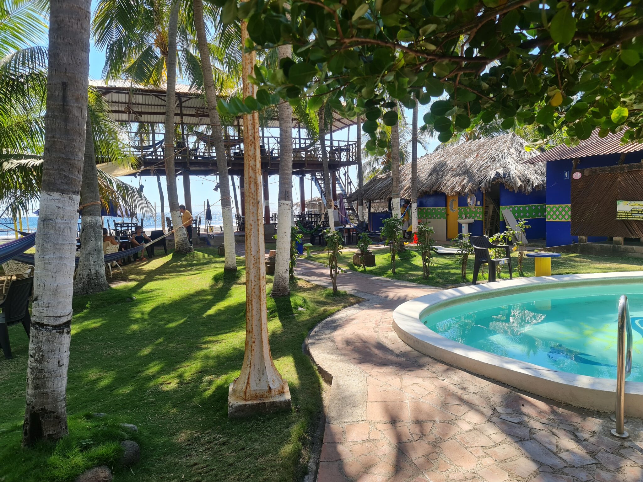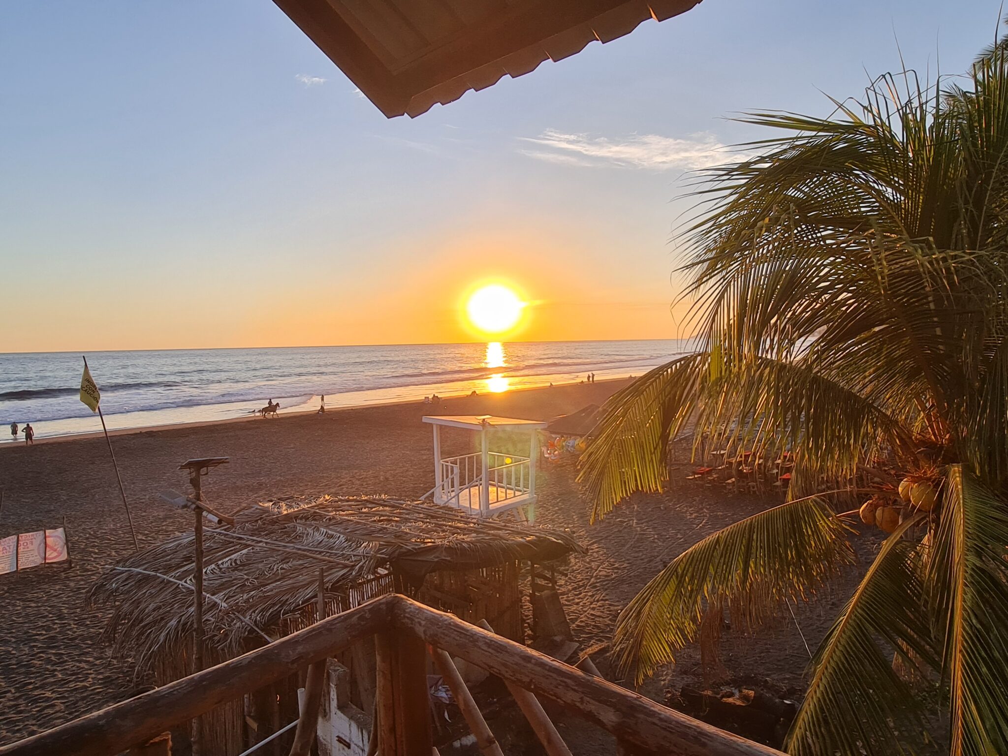 Über iOverlander hatte ich ein Hostel herausgesucht, das auch Zelten im Garten erlaubt. Wir kommen an – und es gefällt mir überhaupt nicht. Die Natur ist hier vertrocknet, alles grau-braun und staubig, die nahe Straße ist laut und das Hostel wirkt auch nicht besonders einladend. Also suchen wir weiter – und finden ein paar Kilometer später das Sol Bohemio in Playa San Blas.
