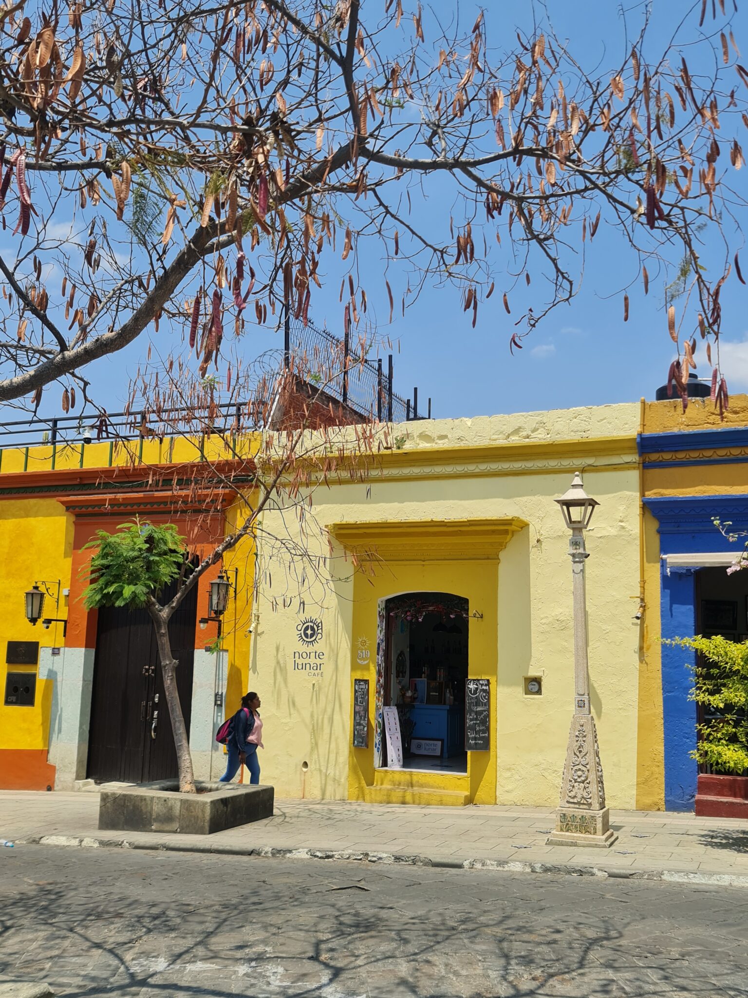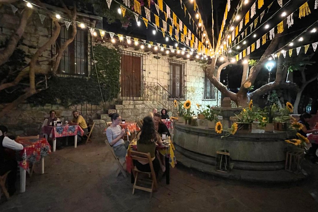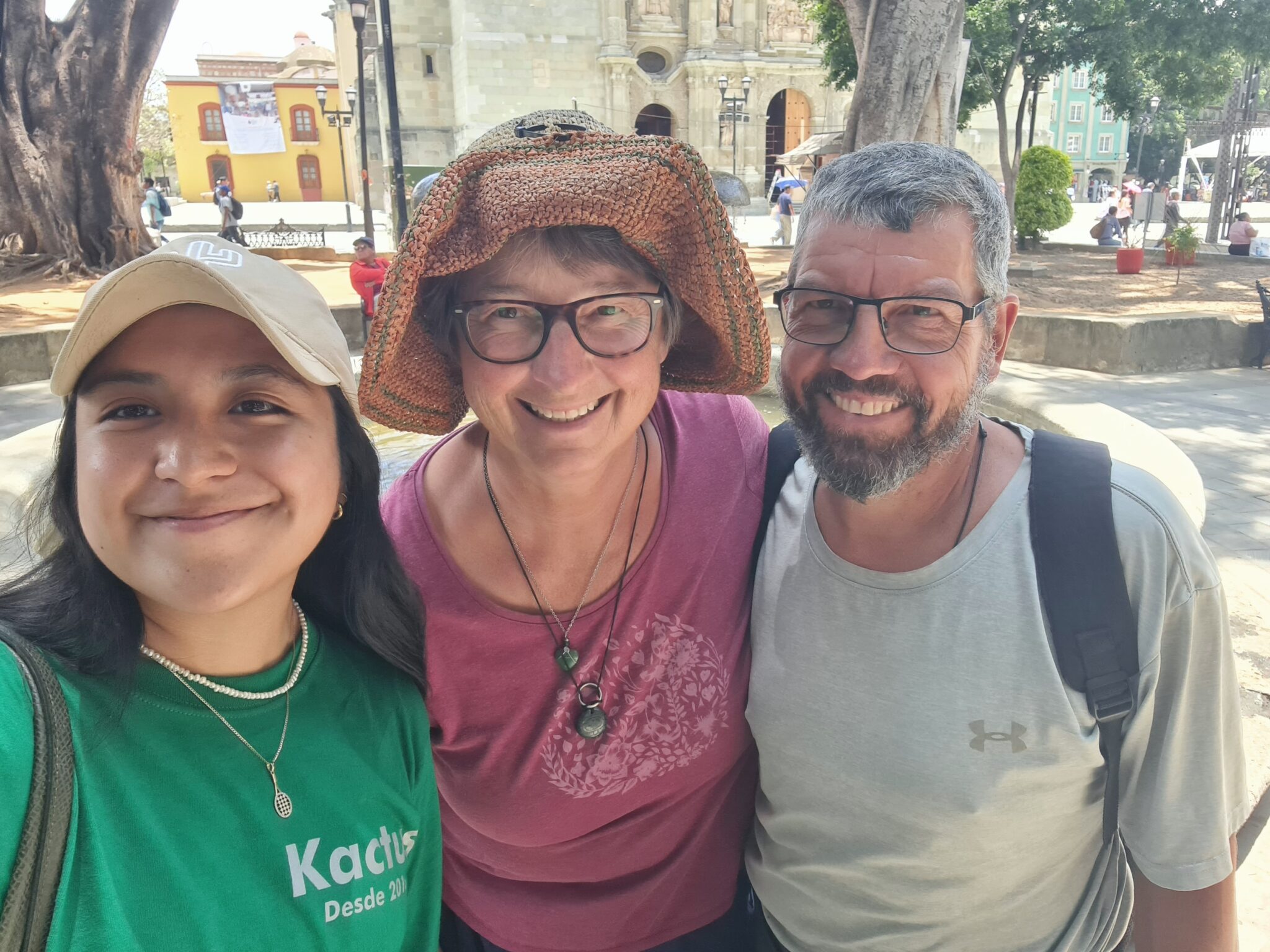 Die letzten Tage verbrachten wir in Oaxaca und in Tule, ganz in der Nähe der Stadt. Oaxaca ist bekannt für seine hervorragende Küche, seine Kultur und seinen Mezcal – und genau das genießen wir ausgiebig. Wir probieren lokale Spezialitäten wie Kaktusblätter (Nopales), Heuschrecken (Chapulines) und natürlich mehrfach die berühmte Mole – eine Schokoladensauce mit Chili, Gewürzen und Nüssen, die typischerweise mit Hühnchen oder Eiern serviert wird. Bei einer Free Walking Tour mit Jenny erfahren wir viel über die Geschichte der Stadt und die Azteken, die hier einst herrschten.