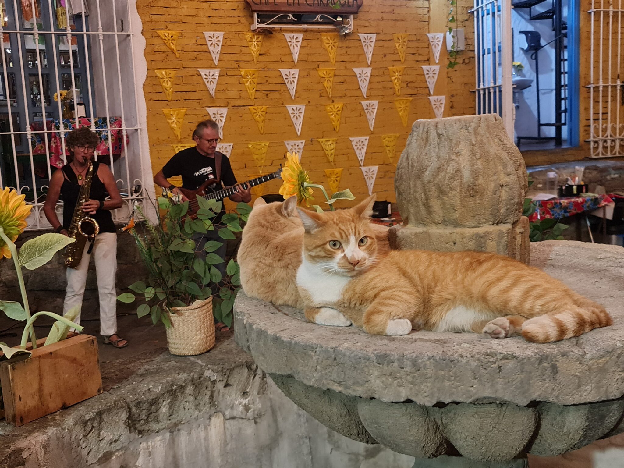 Vor sieben Monaten in San Cristobal hatten wir die beiden österreichischen Musiker Renate und Franz kennengelernt, die seit vier Jahren in ihrer alten Ambulanz durch Mexiko reisen und sich mit Musik finanzieren. Hier in Oaxaca erleben wir sie gleich bei zwei Konzerten und verbringen darüber hinaus viele gesellige Stunden zusammen. Sie laden uns auch zu einer Mezcalprobe auf ihrem Campingplatz ein. Wir probieren uns durch verschiedene Sorten und entscheiden uns schließlich für eine Flasche wilden Mezcal. Dieser gilt als besonders hochwertig, da er aus wild wachsender Agave und nicht aus kultivierten Pflanzen hergestellt wird.