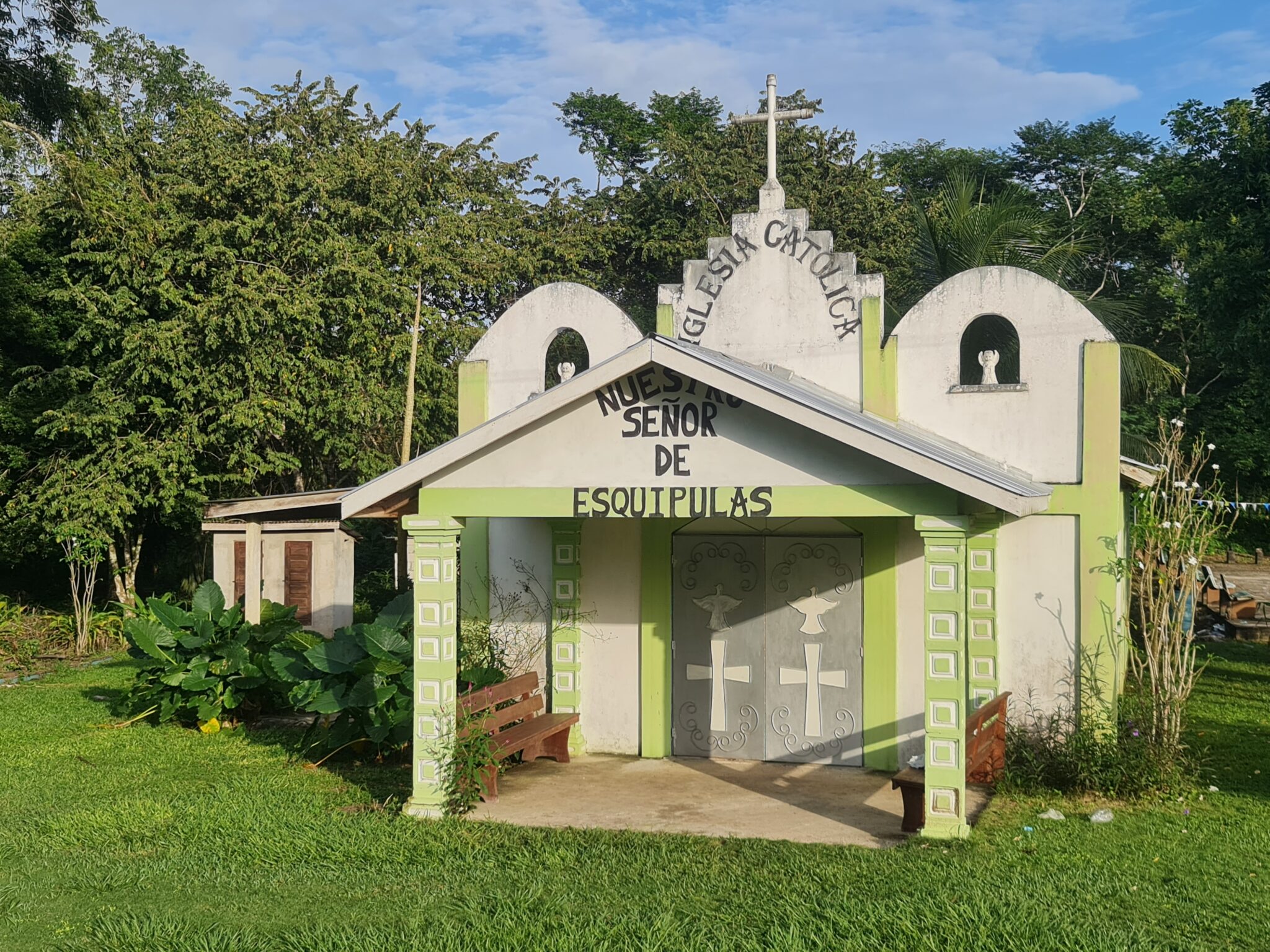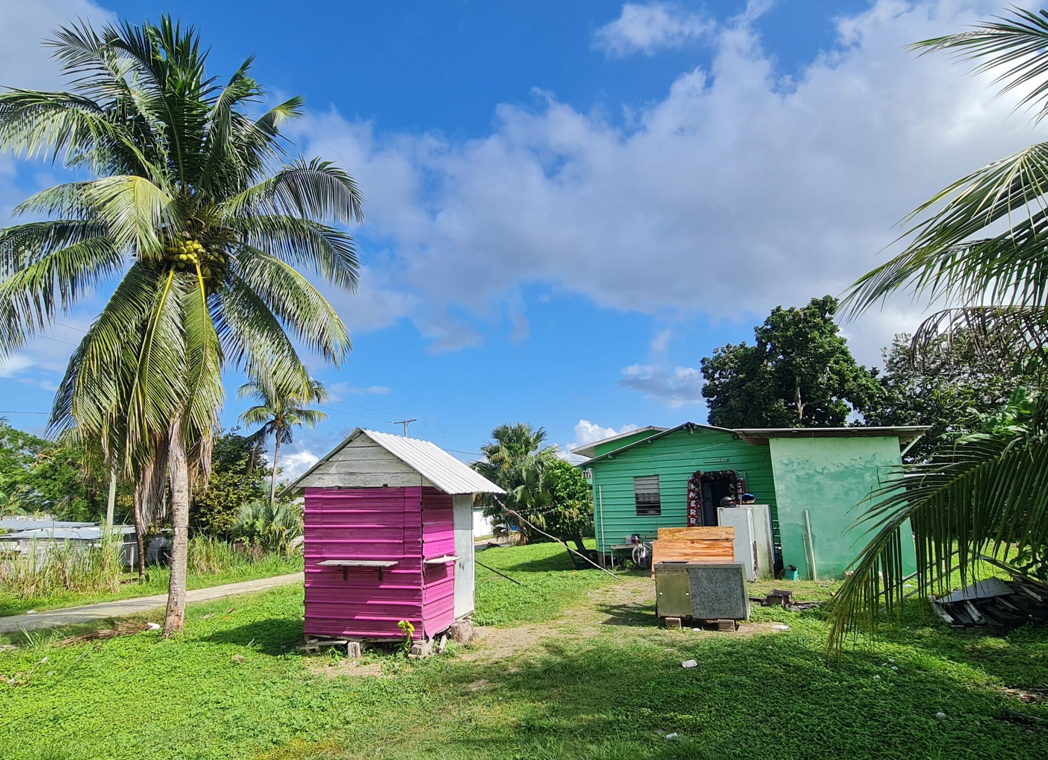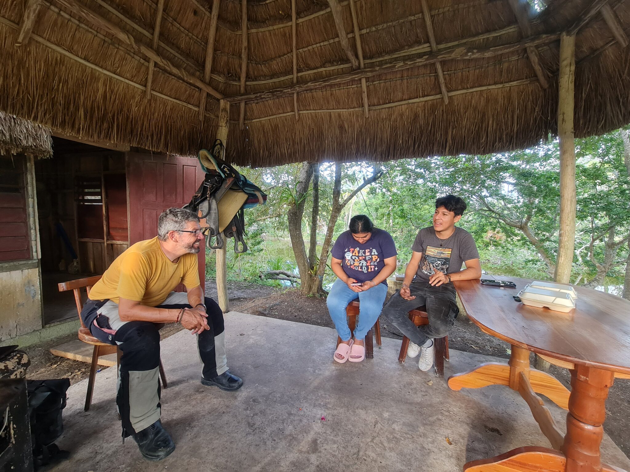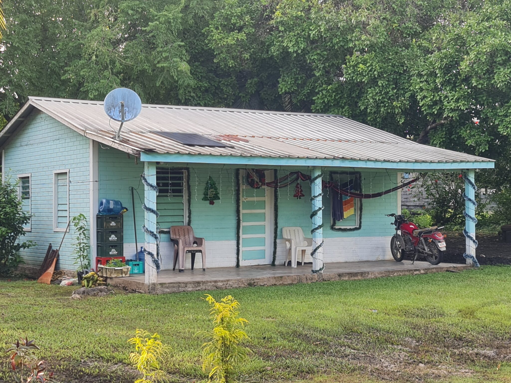 Unsere Reise führt uns weiter nach Indian Church, einem kleinen Dorf nahe der Lamanai-Ruinen. Die Anfahrt ist abenteuerlich, aber unsere Mopeds kämpfen sich tapfer durch jedes Schlagloch. Kaum angekommen, lernen wir Oscar kennen. Es regnet, wir fragen nach einem Zimmer – und wie so oft hier ergibt sich alles ganz einfach: Seine Tante hat ein Guesthouse.