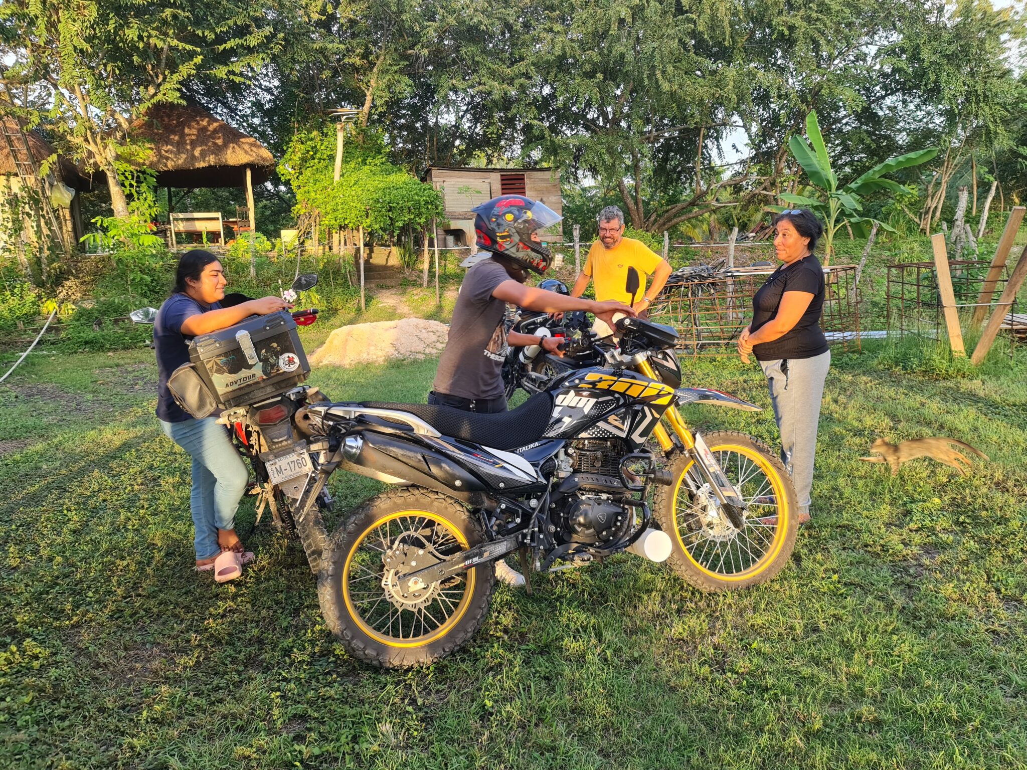 Schweren Herzens verlassen wir Orange Walk Town und fahren auf holprigen Nebenstraßen ein Stück zurück nach San Joaquin. An der Grenze hatten wir Christopher kennengelernt, der uns spontan auf die kleine Farm seiner Eltern eingeladen hat. Er ist begeisterter Motorradfahrer und träumt davon, eines Tages nach Alaska zu fahren – und dann bis zum südlichsten Punkt Südamerikas.