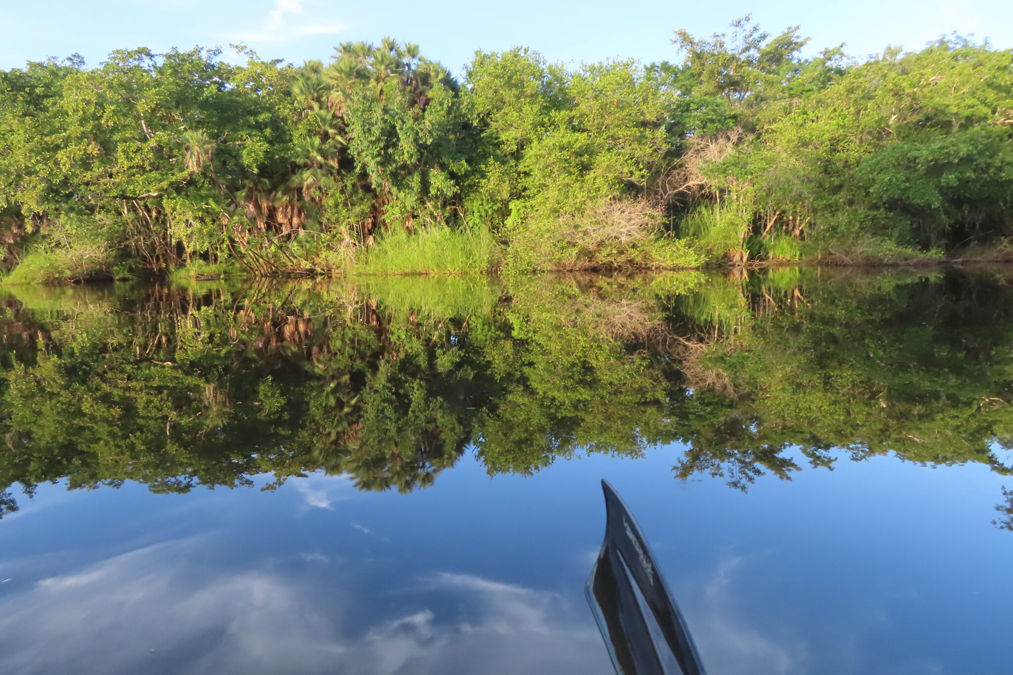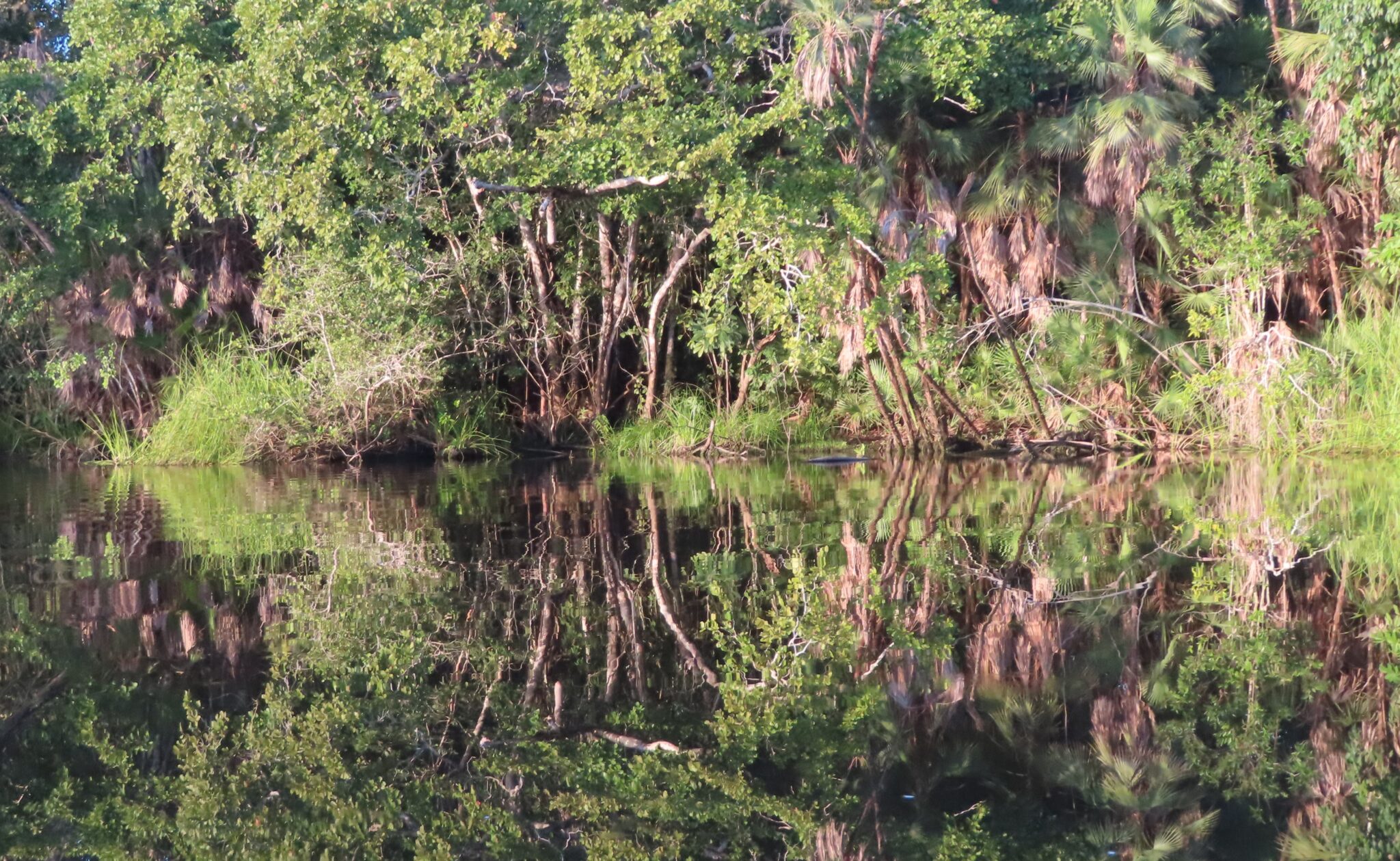Kurz überlegen wir noch, ob Schwimmwesten wohl auch gegen Krokodile helfen. Aber ernsthaft: Ja, es gibt viele hier – und sie sind extrem scheu. Für ein Foto taucht keiner lange genug auf.