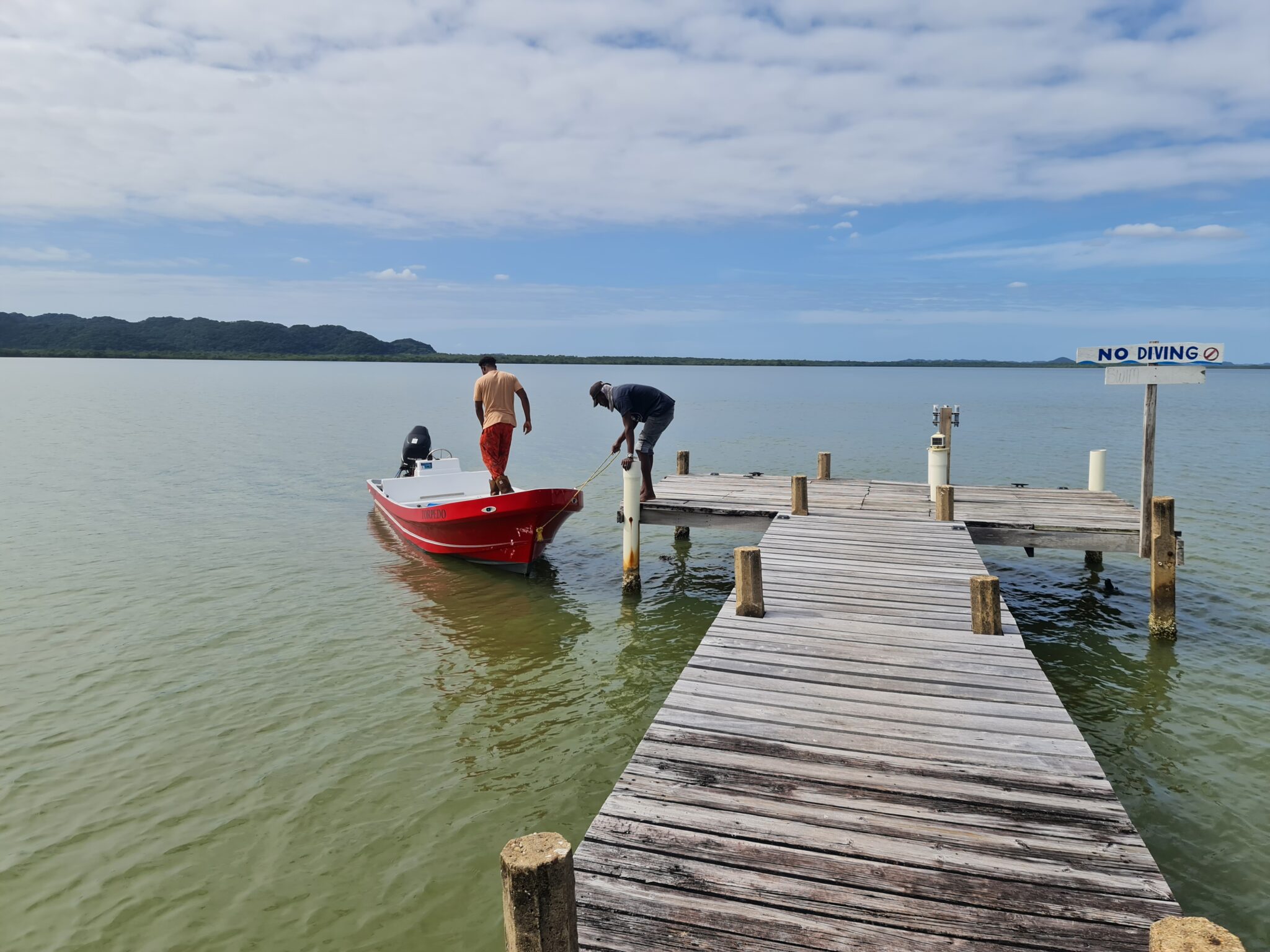 Nicht weit von hier übernachten wir in wohl der bretterbudigsten Unterkunft unserer bisherigen Reisen – auf der Halbinsel Gales Point. Viel Auswahl gibt es hier nicht: Entweder ein teures Resort oder eine einfache, etwas heruntergekommene Hütte bei einer herzlichen schwarzen „Mami“, die uns für wenig Geld auch noch traditionell bekocht. Warum wir uns das antun? Wegen der Lagune. Hier lebt eine riesige Population von Manatis. (Seekühe)