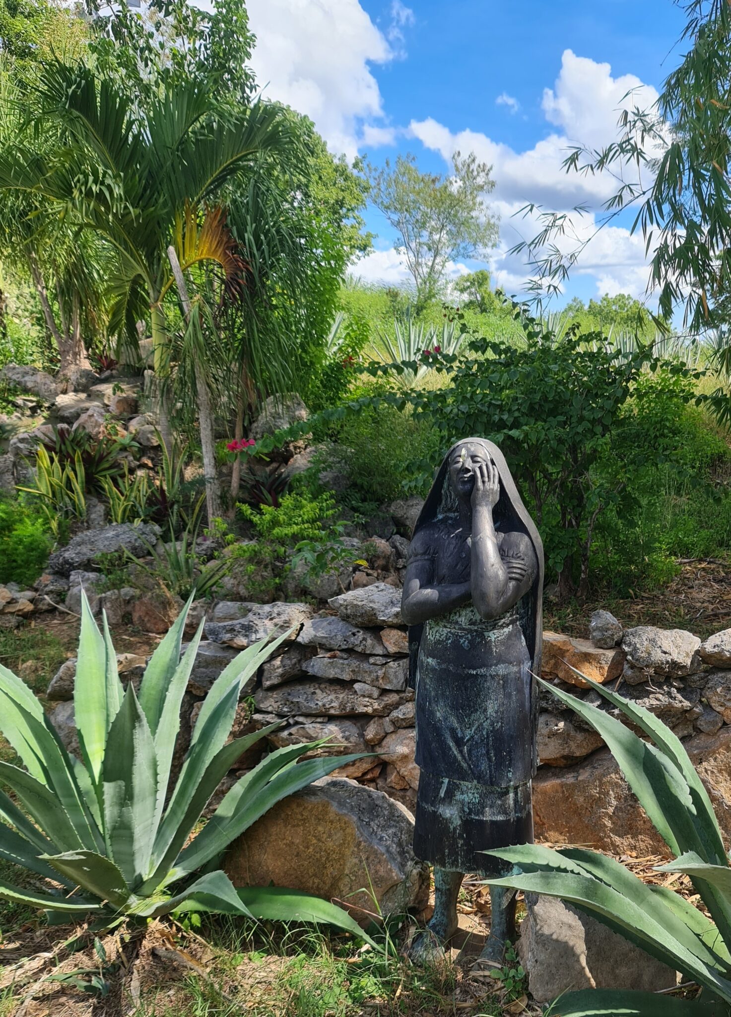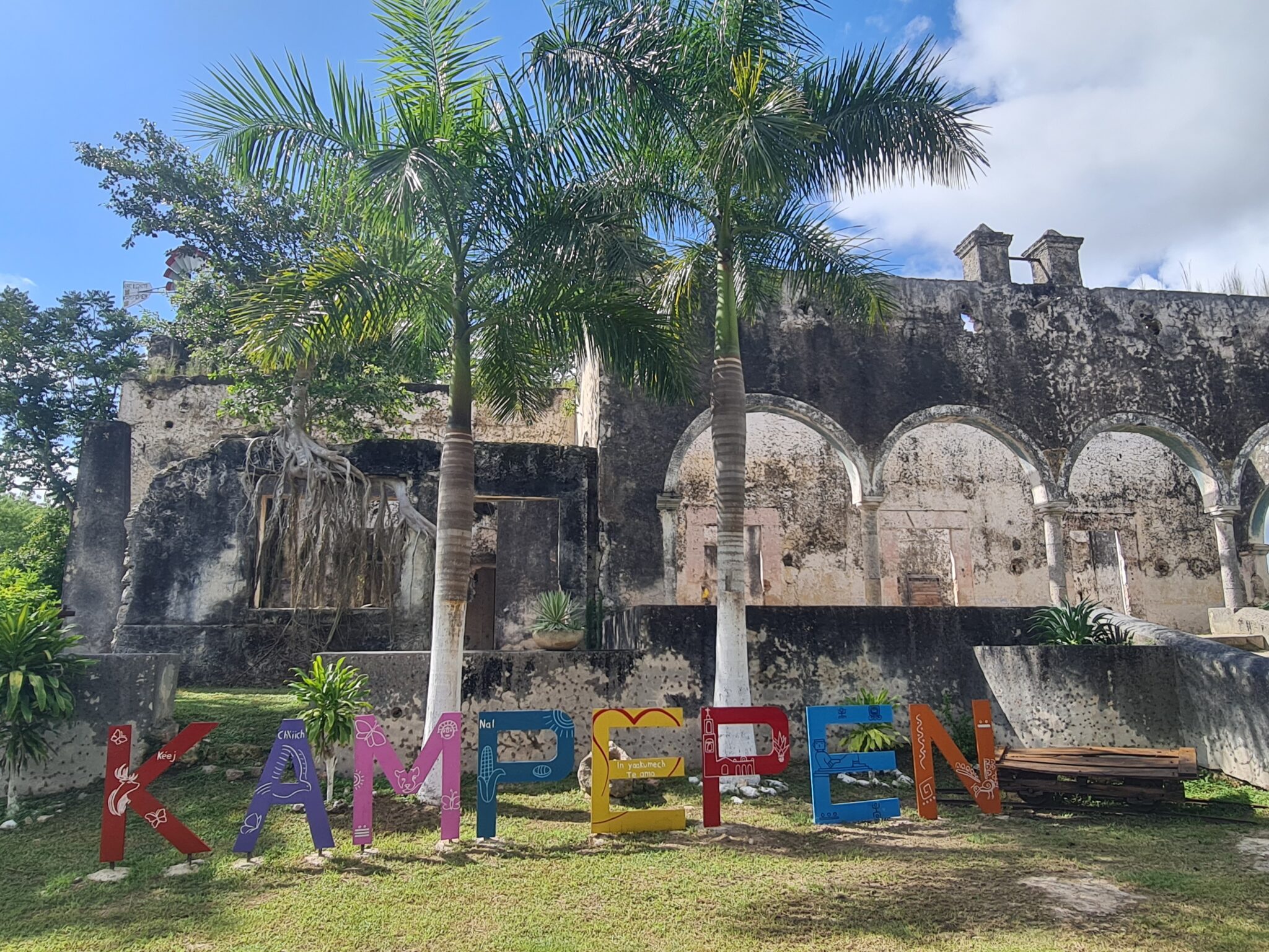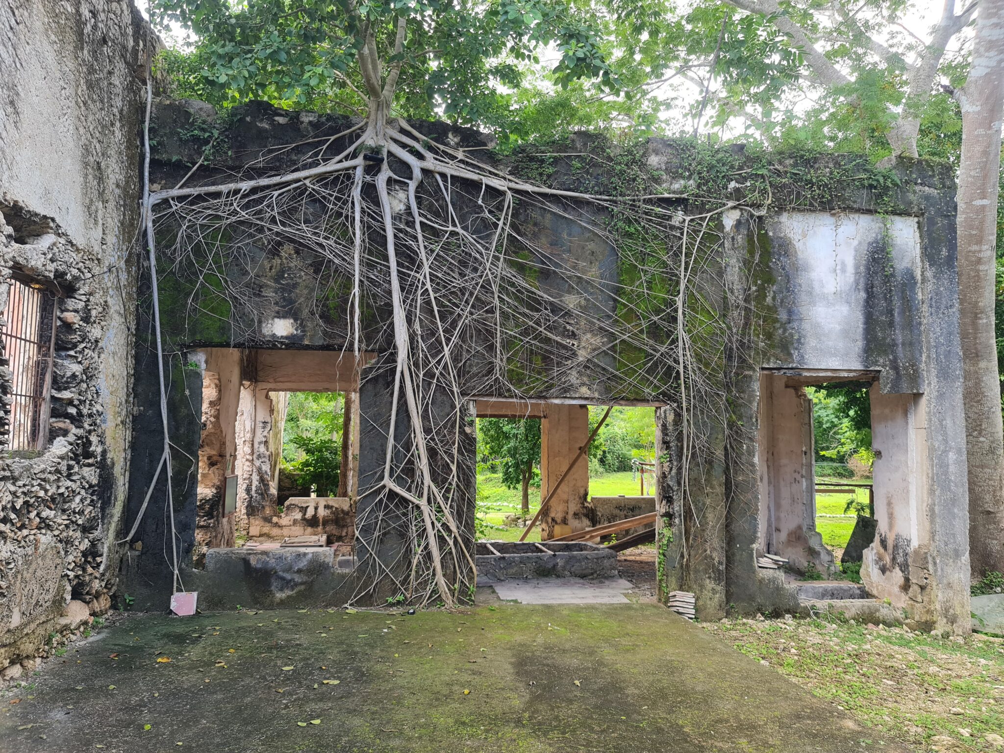 Einst eine blühende Sisal-Hacienda – heute Ruinen, umgeben von zwei traumhaften Cenoten. Zwischen einsturzgefährdeten Mauern und einer alles überwuchernden Natur versuchen wir uns vorzustellen, wie hier früher das Summen der Entfaserungsmaschinen, das Klirren der Werkzeuge und die Stimmen der Arbeiter zu hören waren.