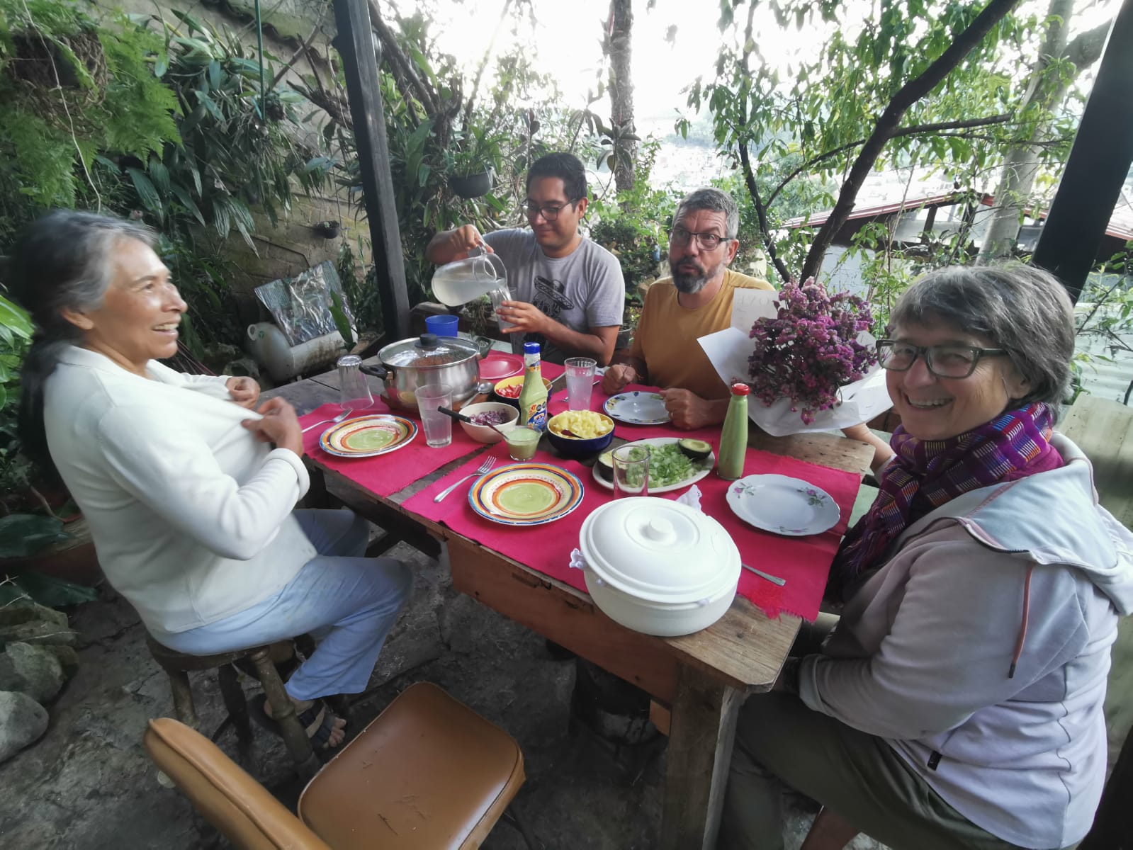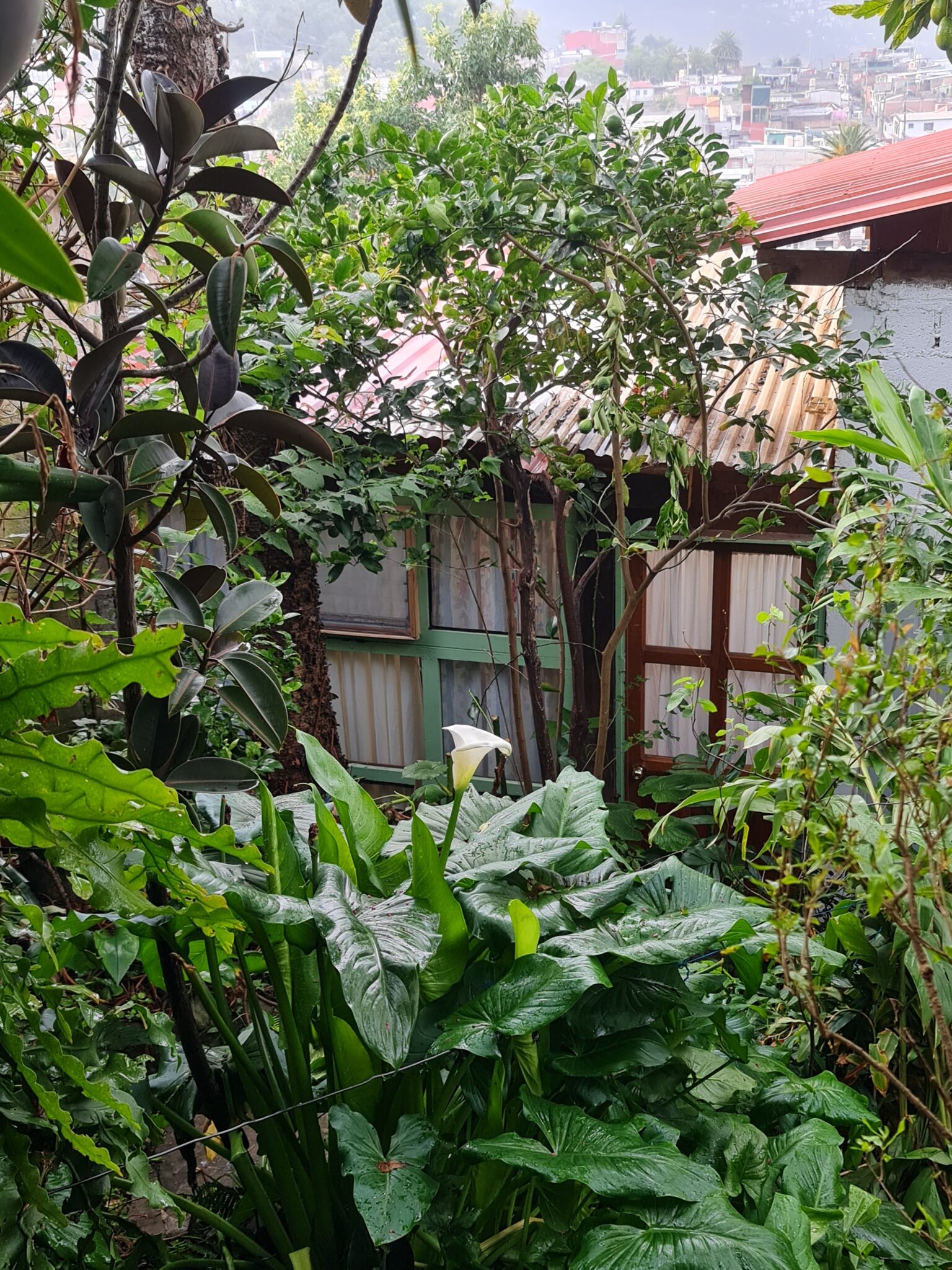Ihr Haus liegt am Rand des Zentrums, und im Garten steht ein kleines Hütte für die Freiwilligen. Der Garten ist ein Traum: hohe Bäume mit Orchideen in den Ästen, Limonen, Avocados, Kolibris überall.