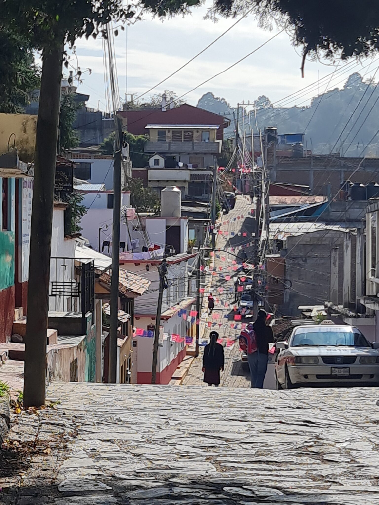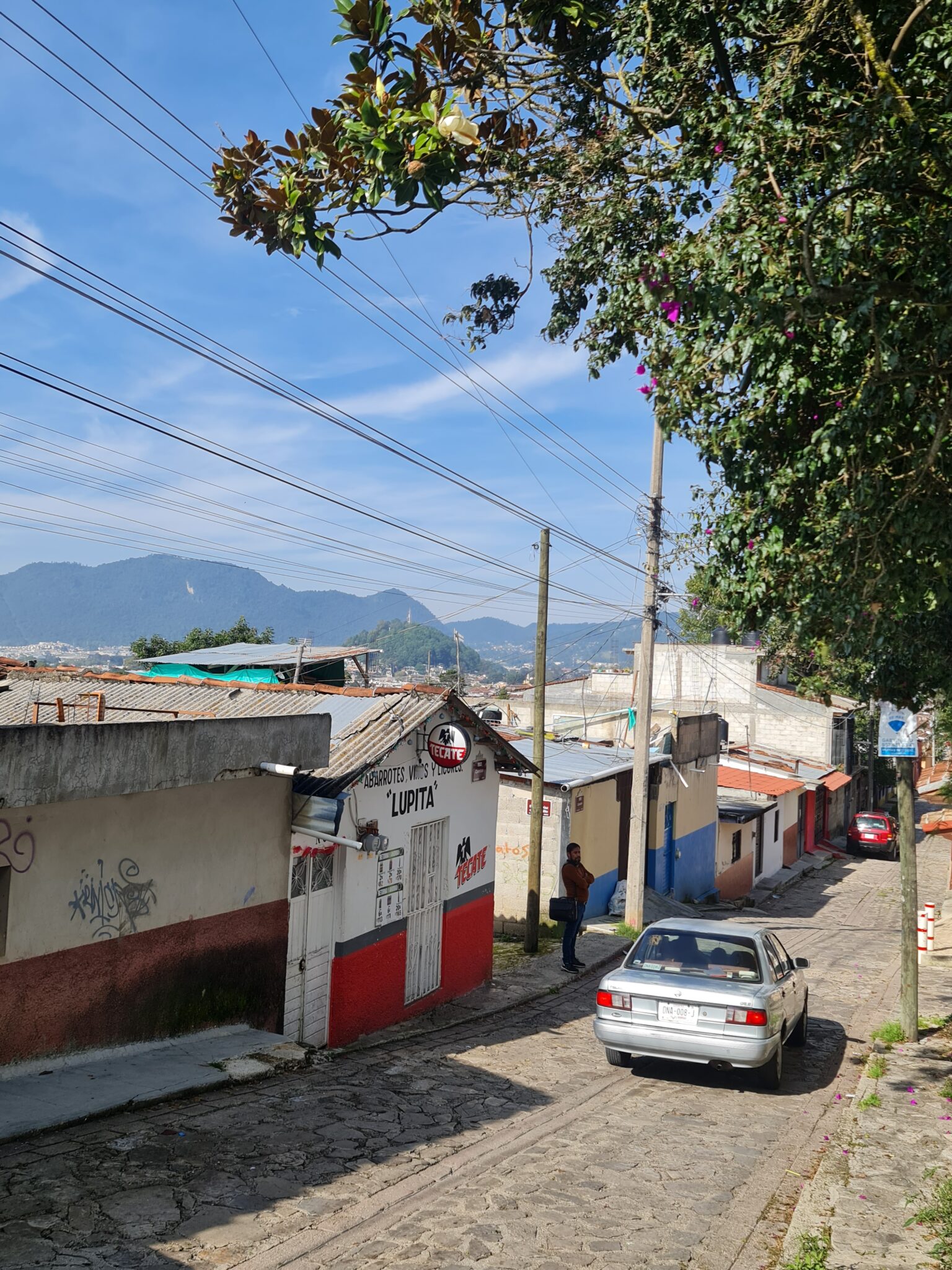 Nach drei Tagen verabschieden wir uns von der Riviera und fliegen nach Tuxtla Gutiérrez, 1500 Kilometer südwestlich – in den wunderschönen Bundesstaat Chiapas. Von dort bringt uns eine rasante Shuttlefahrt (gefühlt mit Formel-1-Ambitionen) nach San Cristóbal de las Casas. Auf 2200 Metern Höhe ist das Klima sofort angenehmer: tagsüber 20 Grad, nachmittags kurze Regenschauer – das erklärt die saftig grünen Hügel ringsum.
