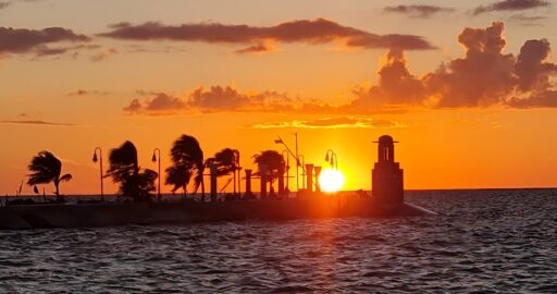 Im Mietwagen angekommen, drehen wir die Klimaanlage auf die höchste Stufe. Noch genießen wir diesen Luxus – das wird sich bald ändern. Unsere erste Nacht in Puerto Morelos ist entsprechend tropisch: heiß, klebrig, unruhig. Wer denkt im kalten Deutschland daran, ein Zimmer mit Klimaanlage zu buchen? Genau – ich nicht. Nach einer kurzen, verschwitzten Nacht und einem Jetlag, der uns um 5 Uhr aus den Betten wirft, zieht es uns ans Meer. Das Meer! Sonnenaufgang über dem Karibikstrand, T-Shirt, Shorts, nackte Füße im Sand – so kann der Tag beginnen.