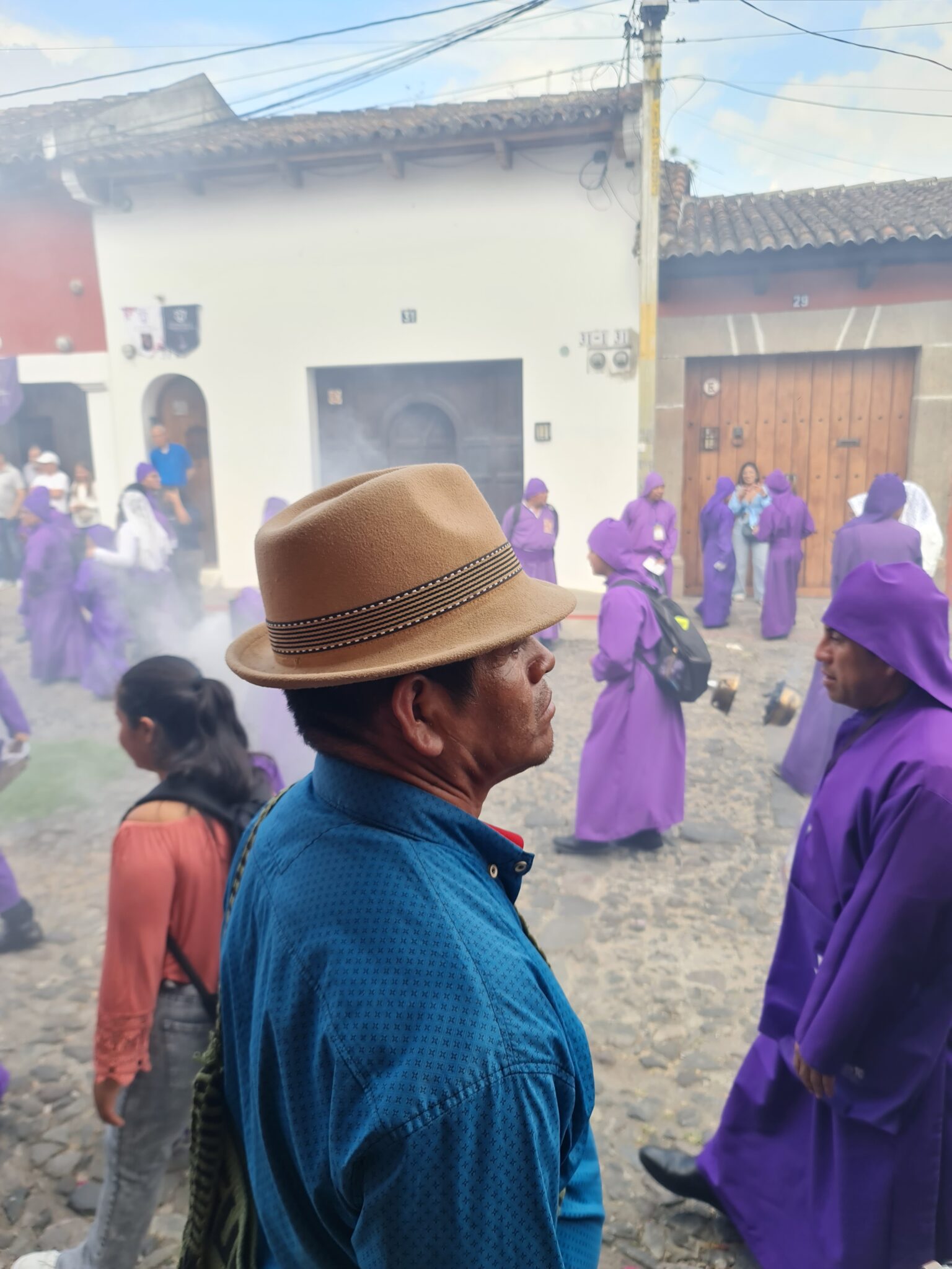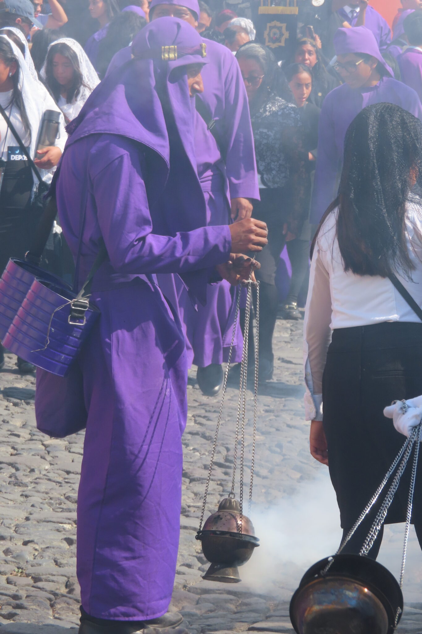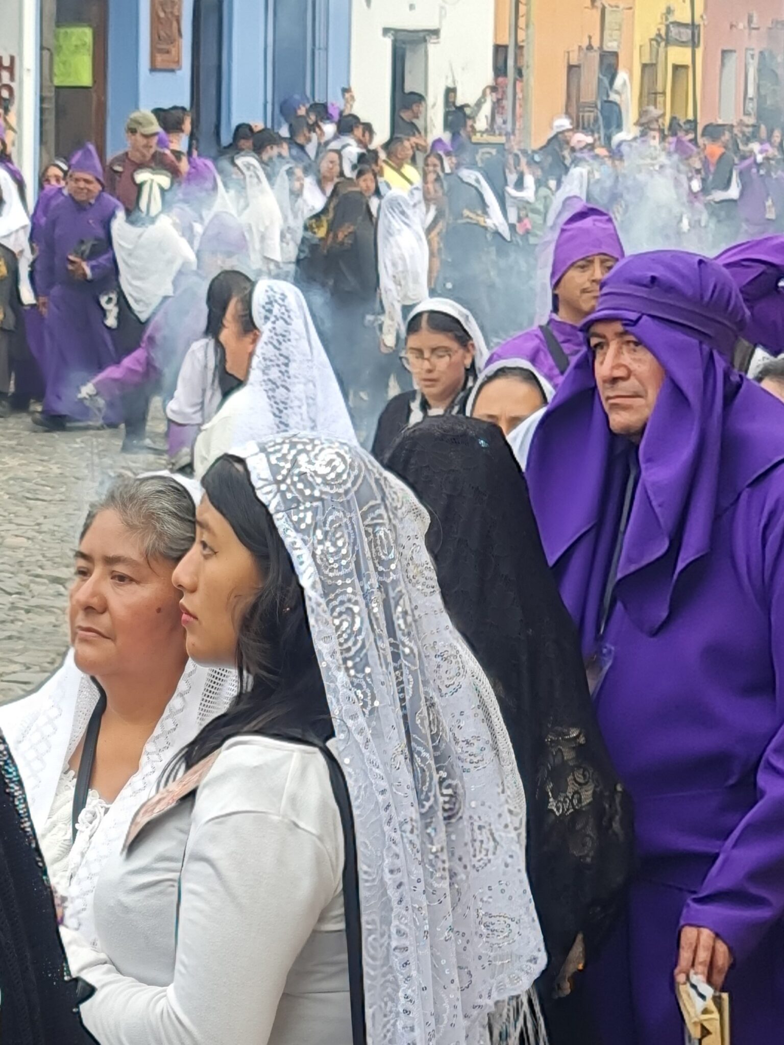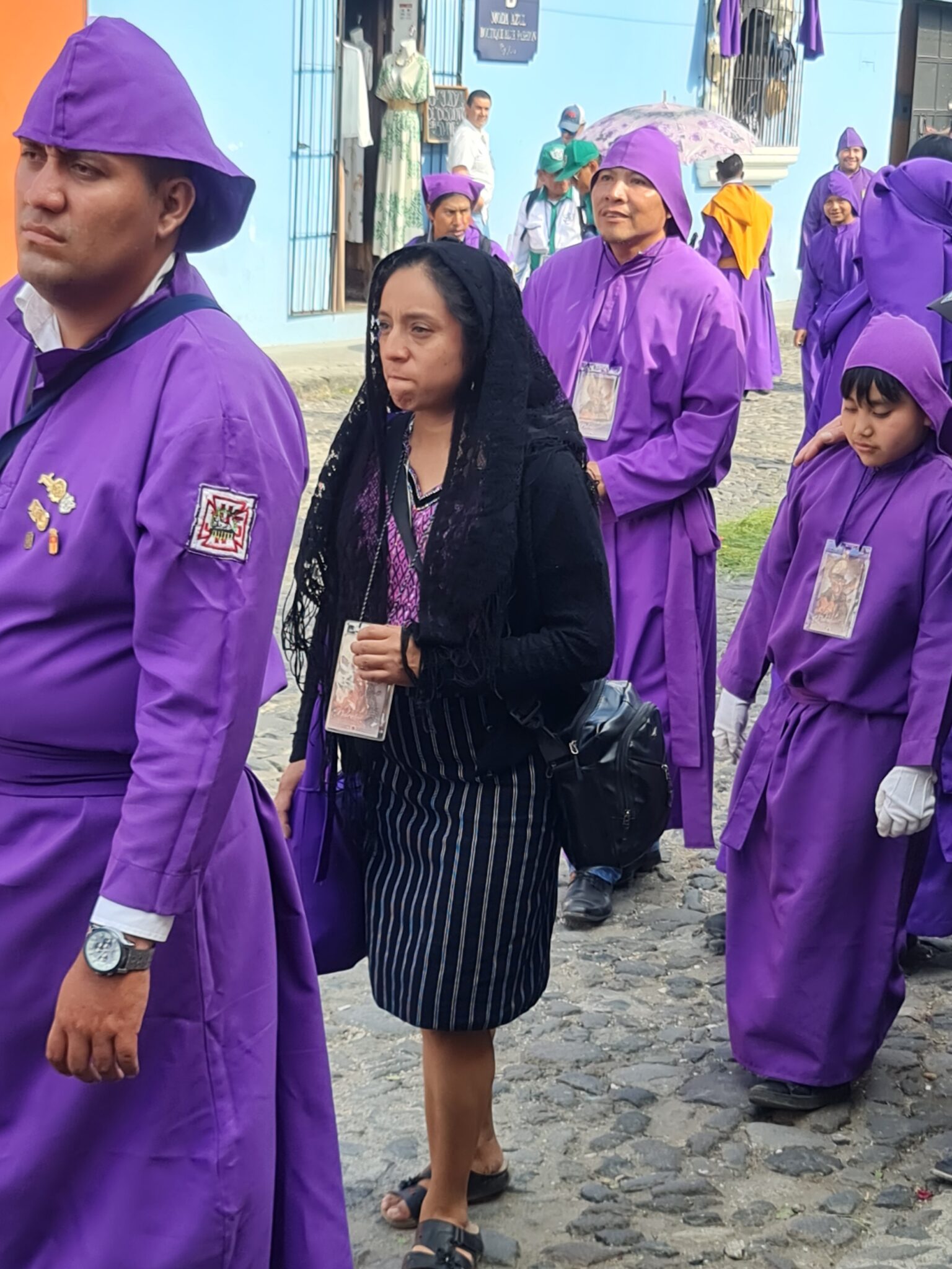 Die Luft ist erfüllt vom Duft von Weihrauch. Überall tragen Männer und Jungen lila Tuniken – ein Symbol für Reue und Buße. Frauen und Mädchen erscheinen in klassischen schwarz-weißen Kombinationen, oft mit Schleiern bedeckt. Die Atmosphäre ist schwer zu greifen – irgendwo zwischen Festival, Familienausflug und stiller Andacht.