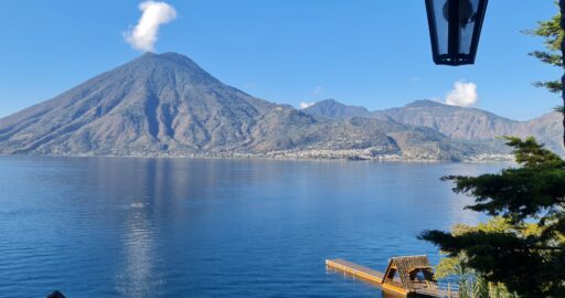 Ein echtes Highlight unserer Unterkunft: die Dachterrasse. Von hier aus haben wir freien Blick auf die umliegenden Vulkane – und nachts sogar auf den Vulkan Fuego, der alle 10 bis 15 Minuten kleine Ausbrüche zeigt. Glühende Lava in der Dunkelheit – eine beeindruckende Naturgewalt, die uns jedes Mal aufs Neue staunen lässt.