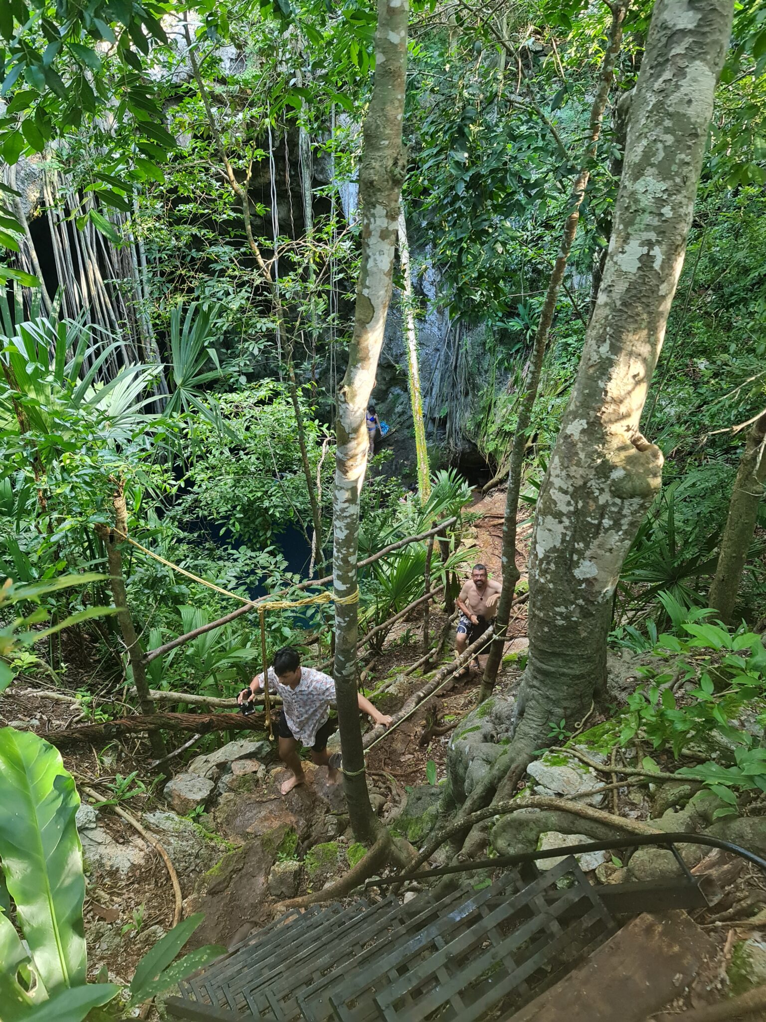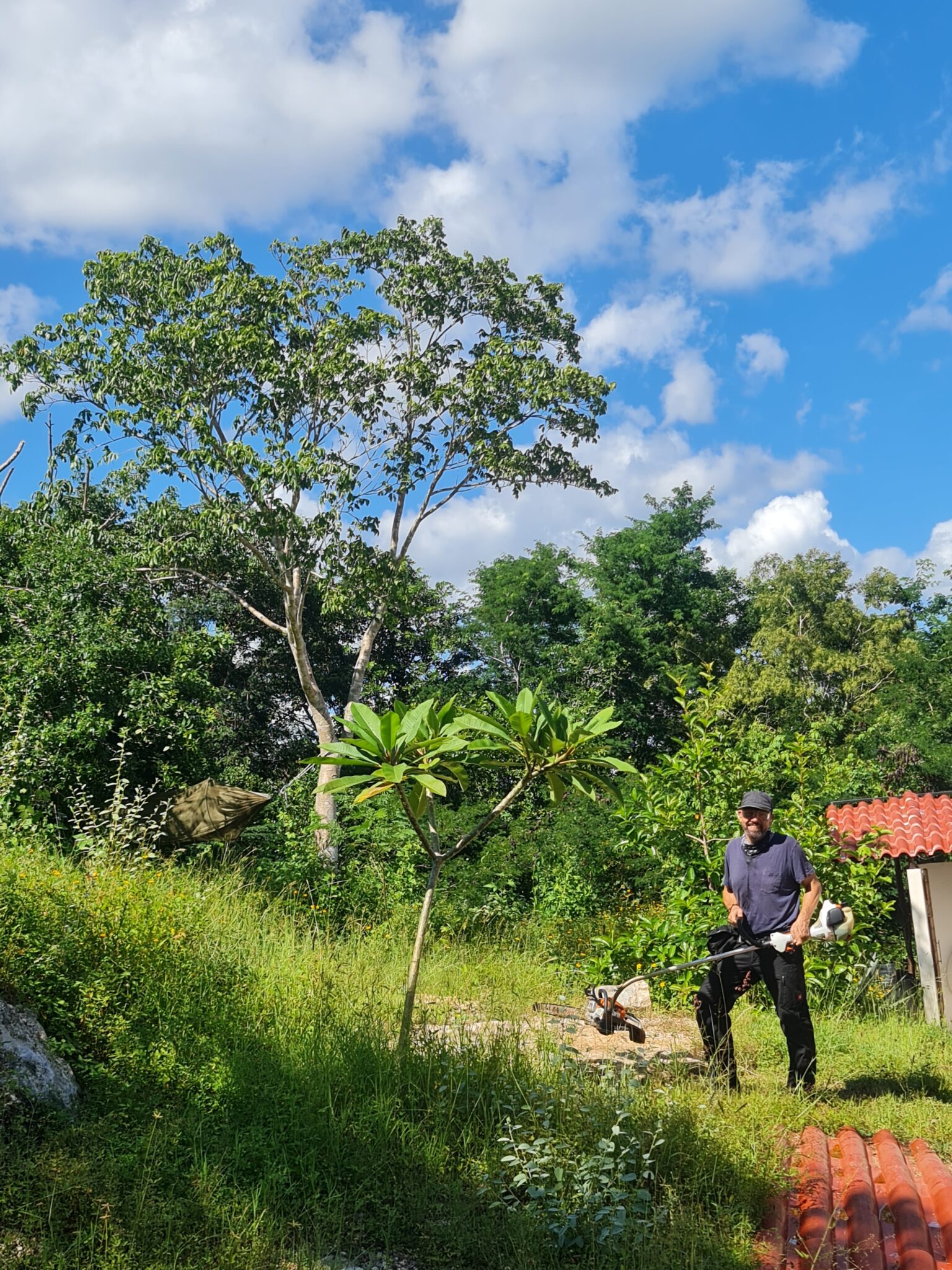 Hier in Yucatán holt sich die Natur jede freie Fläche zurück – und zwar schneller, als man „Machete“ sagen kann. Das Grundstück war zuletzt vor einem halben Jahr gepflegt worden. Ohne Freischneider und Kettensäge wären wir gar nicht mehr durchgekommen. Stundenlang reißen, sägen, hacken. Wurzeln raus, Schlingpflanzen runter, Büsche besiegt – und dann: ein Wespennest.