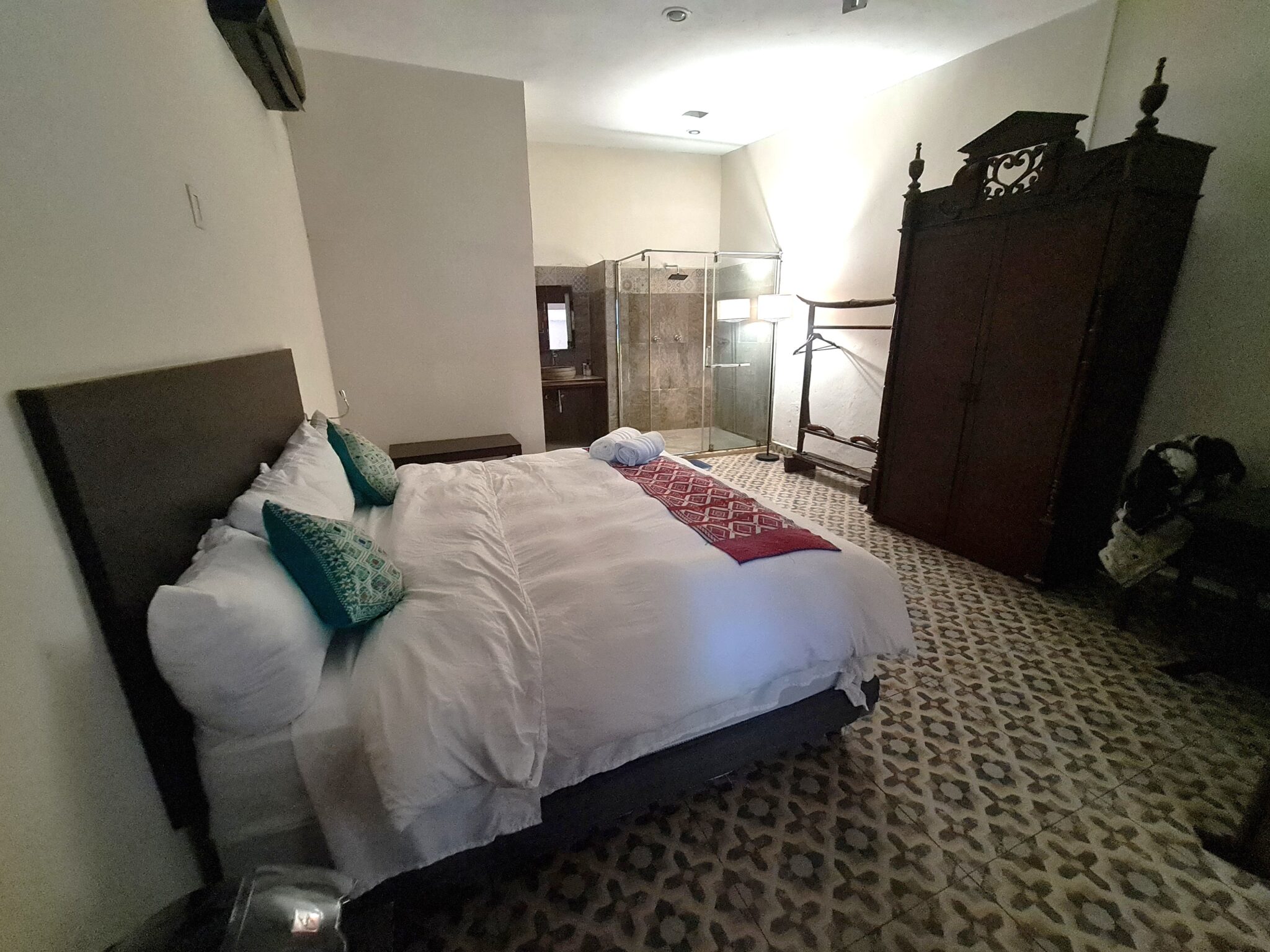 Und diesmal haben wir richtig Glück mit unserer Unterkunft. Wie so oft buchen wir über Booking das günstigste Zimmer – und fragen bei der Ankunft, ob wir noch eine Nacht dranhängen dürfen. Meist wird’s dann sogar günstiger (Booking-Gebühr gespart!). Dieses Mal bekommen wir gleich ein Upgrade: ein riesiges Zimmer am hintersten Ende des Innenhofs, absolute Ruhe, nur das Plätschern des kleinen Pools. Luxus für 23 Euro pro Nacht – wir sind im Paradies.