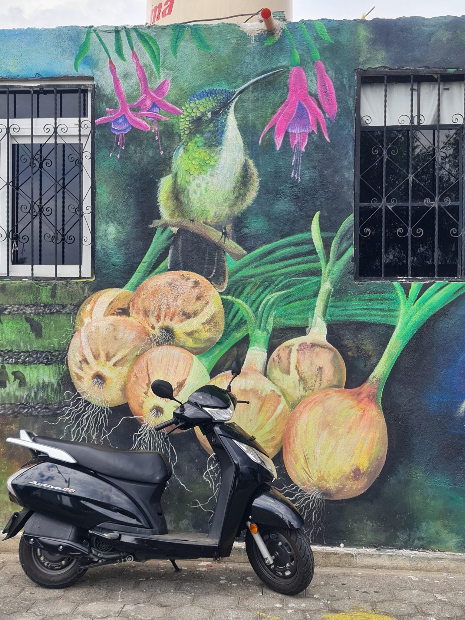 Als Guatemalteke kennt er natürlich jede Straße in seinem Land und kann tolle Tipps geben. Sein Netzwerk ist beeindruckend – und so stellen wir schnell fest, welche Motorradreisenden wir gemeinsam kennen. Und wie es der Zufall will, sind auch Herbert und Yuri gerade in der Nähe. Es kommt zu einem fröhlichen deutsch-guatemaltekischen Treffen, bei dem wir über Guatemala, das Reisen mit dem Motorrad und das Leben in unseren jeweiligen Ländern sprechen. Yuri stammt ursprünglich aus Guatemala und lebt seit vier Jahren in Deutschland – aktuell ist sie mit Herbert und Baby auf Familienbesuch hier. Und Cisco hat in Deutschland studiert und kennt sich auch dort gut aus.