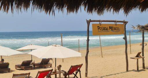 Nicht nur der Lärm, auch die Unfreundlichkeit der Besitzer lassen uns weiterziehen. Wir finden schließlich einen tollen Platz – näher an der Stadt, größer, ruhiger. Perfekt für drei entspannte Nächte. Das Zelt direkt am Wasser unter einer Palapa, Baden in der Lagune, ein leichter Wind, angenehme Temperaturen – herrlich.