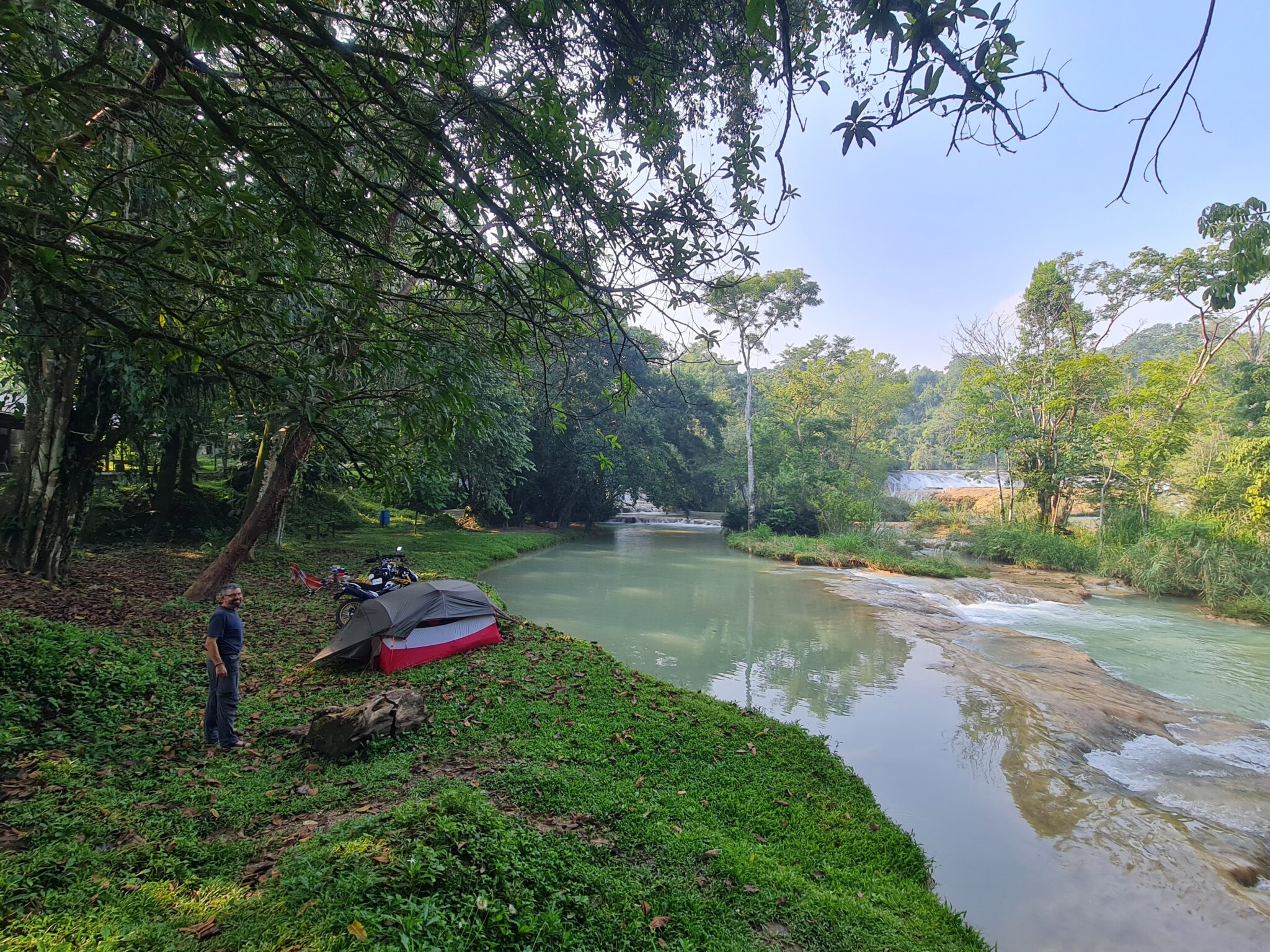 In Palenque suchen wir uns deshalb einen Zeltplatz bei einer Familie, bei der wir das gesamte Haus mitbenutzen dürfen. Küche inklusive – und sogar eine kalte Dusche. Luxus!