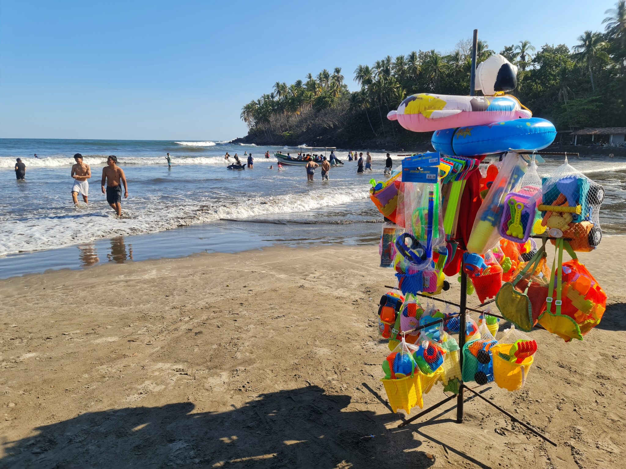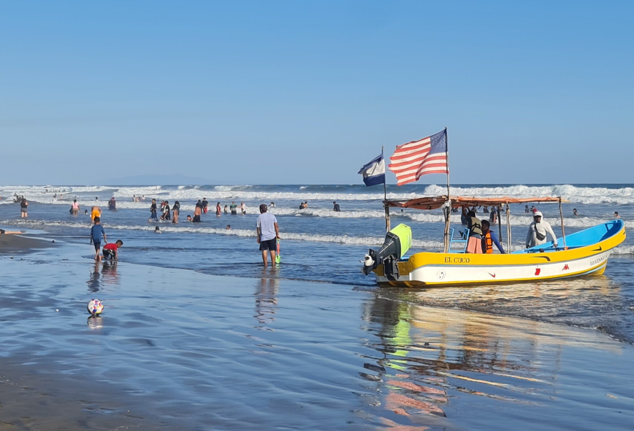 Der Sonntag scheint uns perfekt dafür – auch wenn wir ahnen, dass wir dort nicht allein sein werden. Und genau so kommt es: In El Cuco angekommen, staunen wir über die vielen Menschen. Stundenlang stehen die Familien im Wasser, liegen in Hängematten oder sitzen entspannt in Restaurants und schlemmen. Die Salvadorianer feiern das Wochenende – und das Leben.